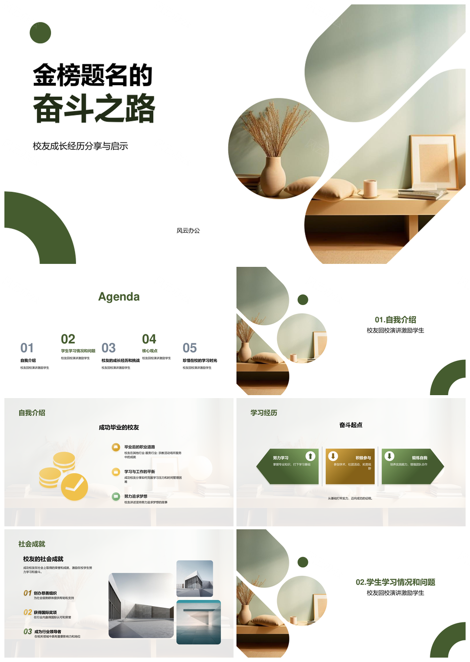 这是一张感恩母校奋斗校友荣光演讲相册书成长路PPT模板,包含感恩、母校、奋斗、校友、荣光、演讲、相册、书、成长路等主题内容,也可用作感恩母校奋斗校友荣光、母校奋斗校友荣光演讲、奋斗校友荣光演讲相册书、校友荣光演讲相册书成长路、荣光演讲相册书成长路、感恩母校奋斗校友、母校奋斗校友荣光、奋斗校友荣光演讲、校友荣光演讲相册书、荣光演讲相册书成长路、相册书成长路、感恩母校、母校奋斗、奋斗校友、校友荣光等PPT场景使用。 风云办公提供的感恩母校奋斗校友荣光演讲相册书成长路PPT模板,下载格式为pptx,一共24页,作品中文字及图均可以修改和编辑,图片更改请在作品中右键图片并更换,文字修改请直接点击文字进行修改。