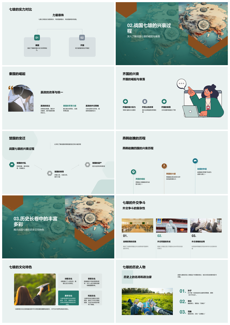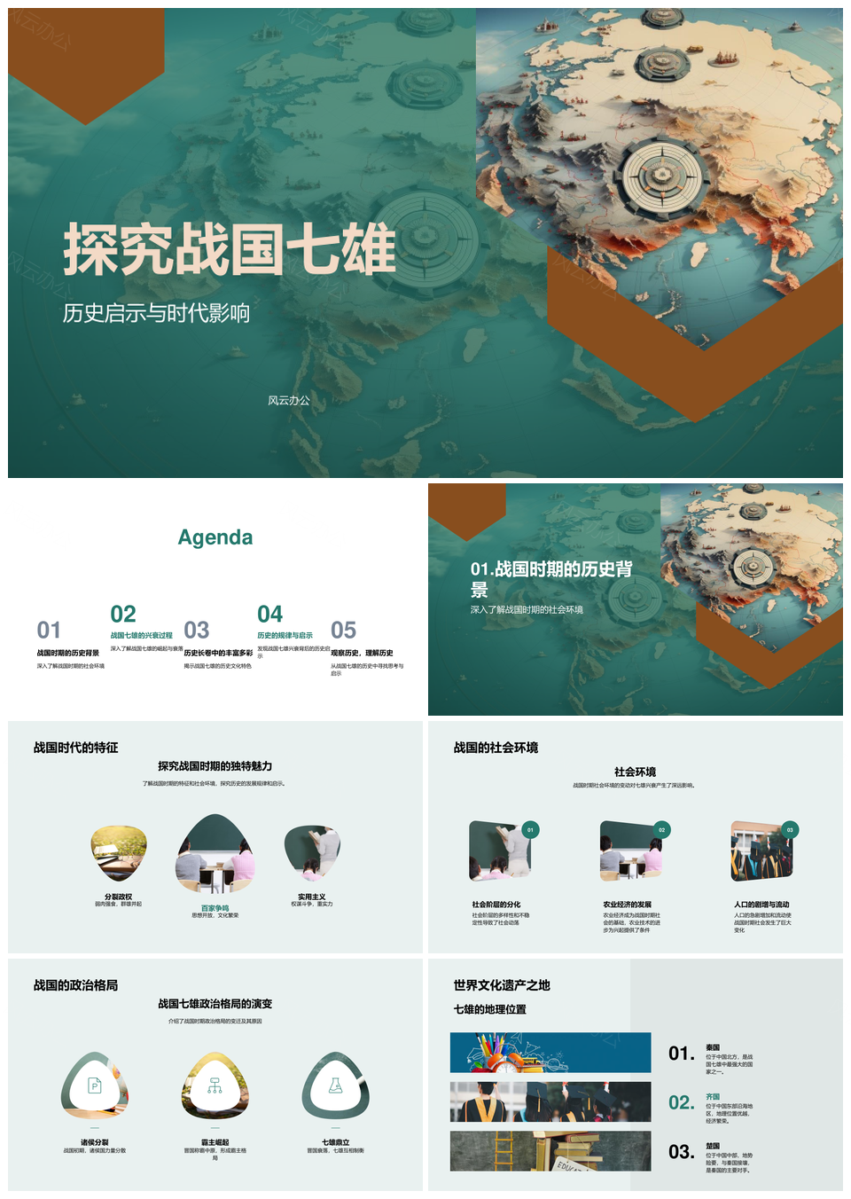 风云办公提供的战国七雄兴衰变迁与秦国崛起历史启示PPT模板,下载格式为pptx,一共27页,作品中文字及图均可以修改和编辑,图片更改请在作品中右键图片并更换,文字修改请直接点击文字进行修改。