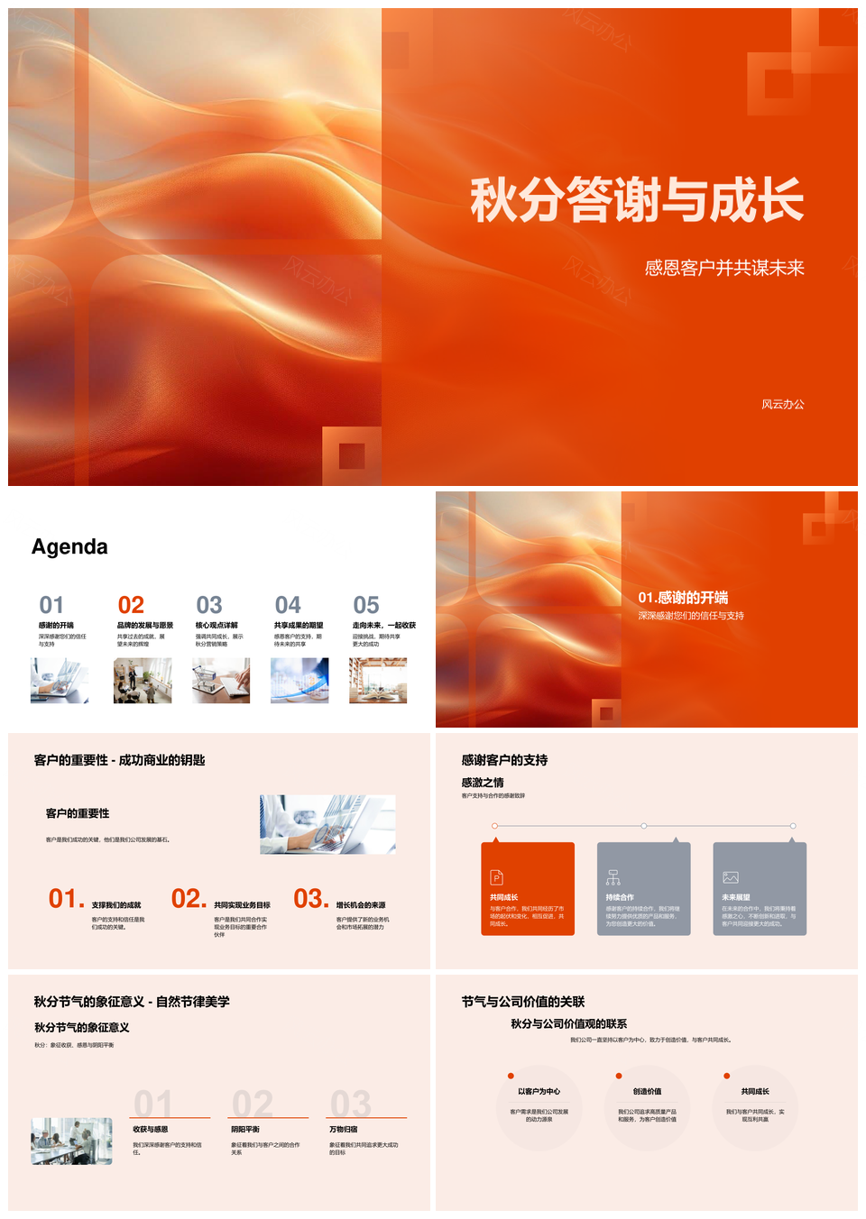 风云办公提供的秋分感恩客户共成长营销策略PPT模板,下载格式为pptx,一共26页,作品中文字及图均可以修改和编辑,图片更改请在作品中右键图片并更换,文字修改请直接点击文字进行修改。
