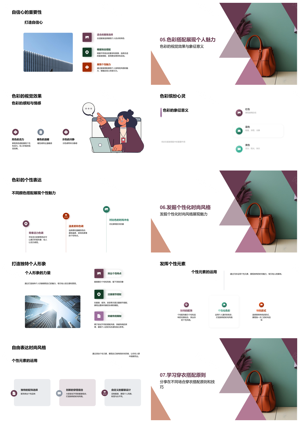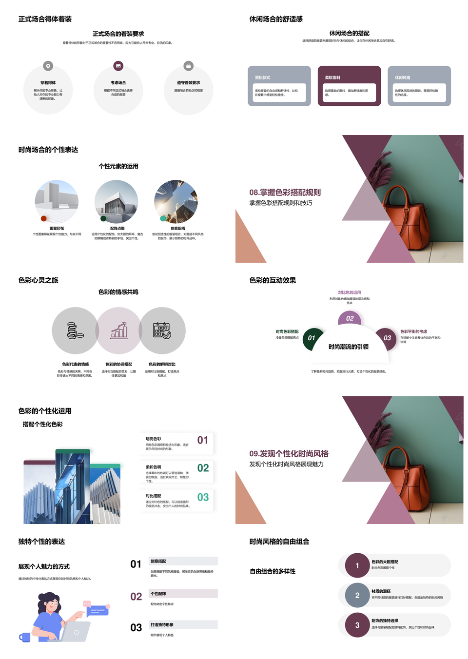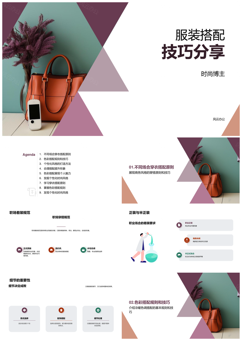 风云办公提供的时尚博主场合穿搭配色个性配饰技巧PPT模板,下载格式为pptx,一共39页,作品中文字及图均可以修改和编辑,图片更改请在作品中右键图片并更换,文字修改请直接点击文字进行修改。