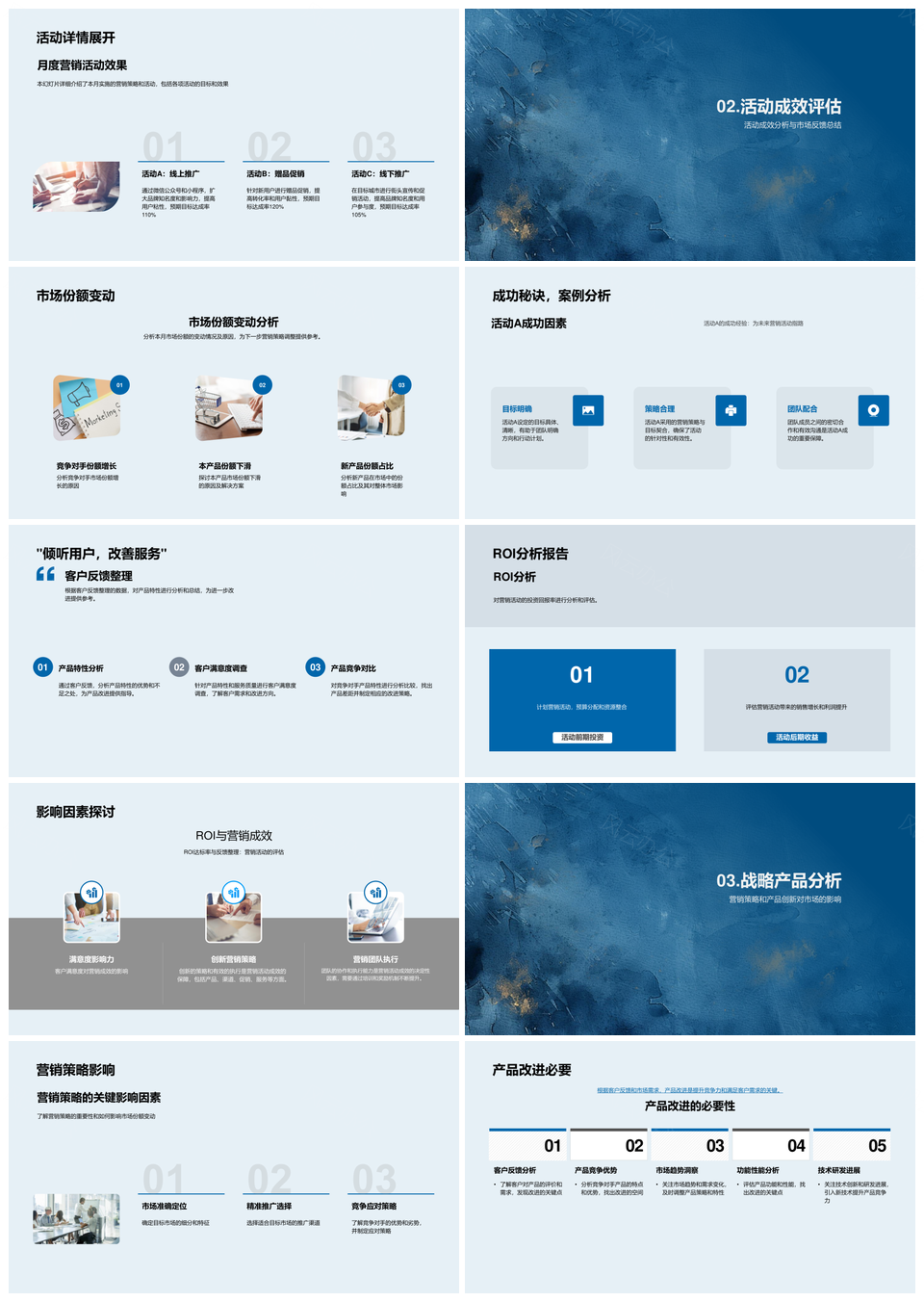 营销月报策略分析下月计划市场动态活动份额反馈ROIPPT模板