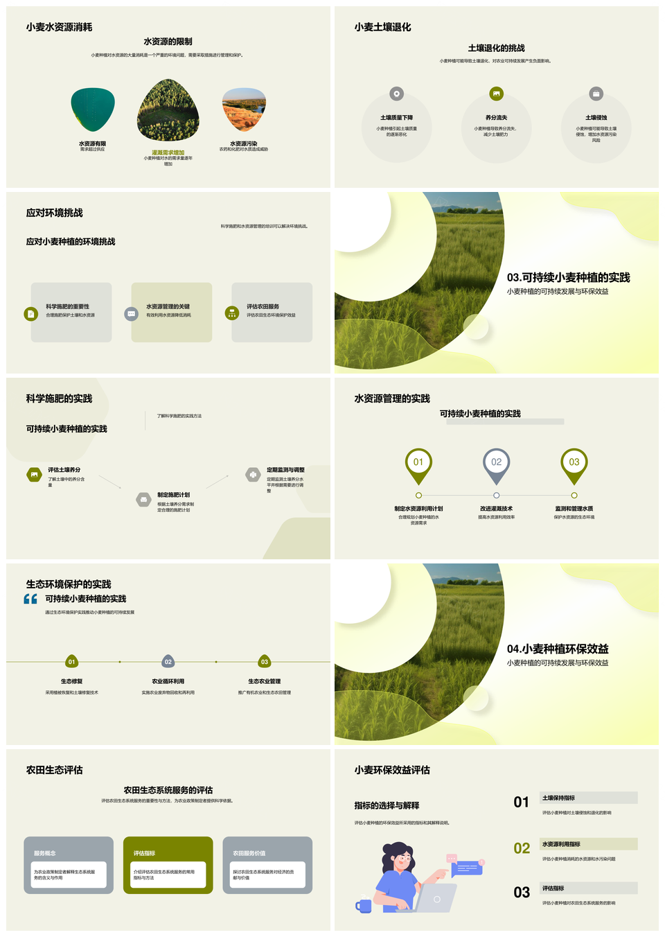 这是一张绿色小麦可持续种植环保水土效益PPT模板,包含绿色小麦、可持续、种植、环保、水土效益等主题内容,也可用作绿色小麦可持续种植、小麦可持续种植环保、可持续种植环保水土、种植环保水土效益、绿色小麦可持续、小麦可持续种植、可持续种植环保、种植环保水土、环保水土效益、绿色小麦、小麦可持续、可持续种植、种植环保、环保水土、水土效益等PPT场景使用。