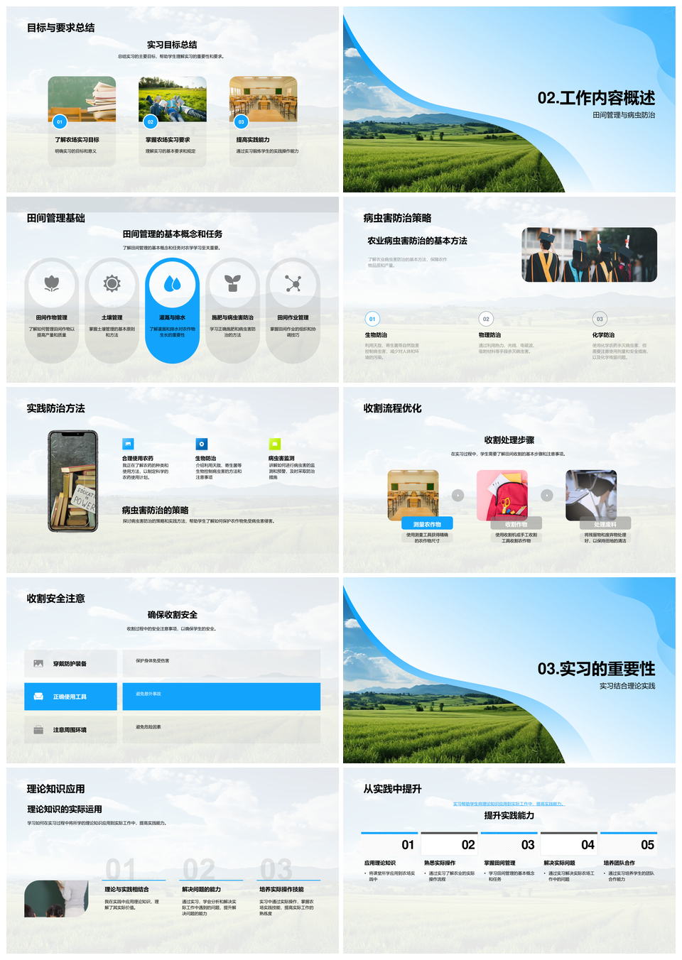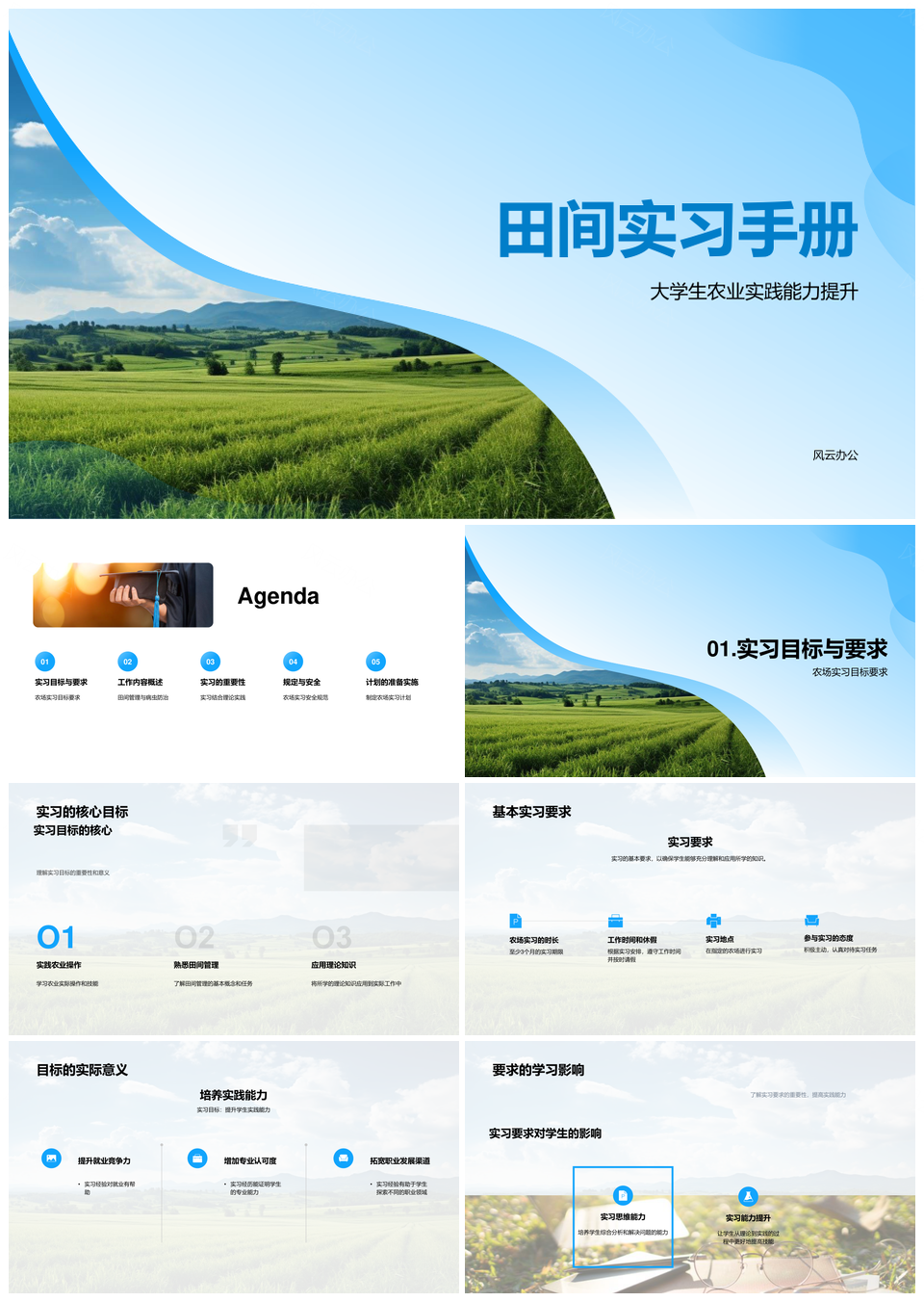 风云办公提供的农场实习田间管理病虫害防治收割手册PPT模板,下载格式为pptx,一共33页,作品中文字及图均可以修改和编辑,图片更改请在作品中右键图片并更换,文字修改请直接点击文字进行修改。