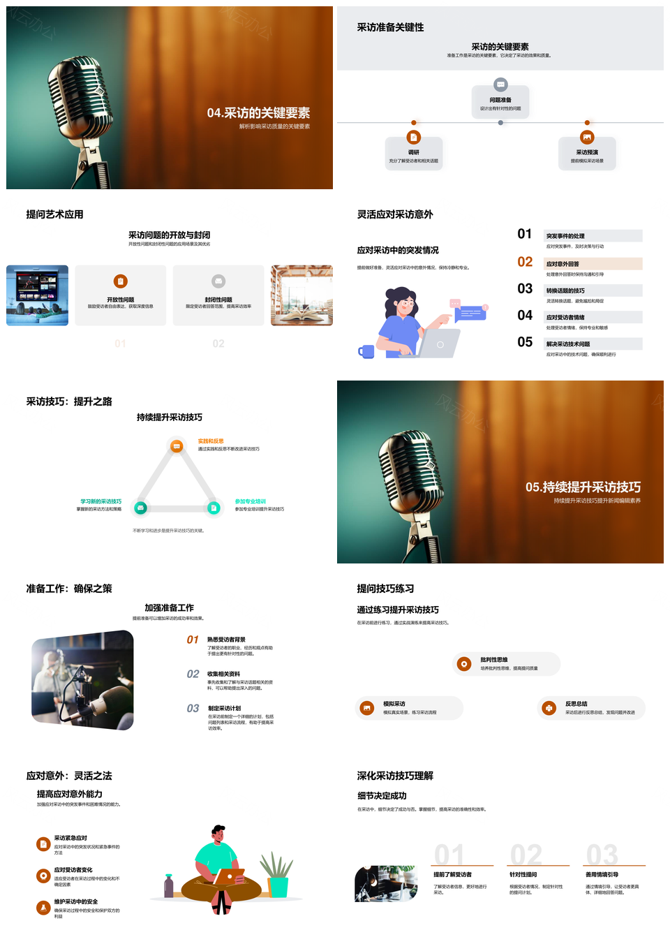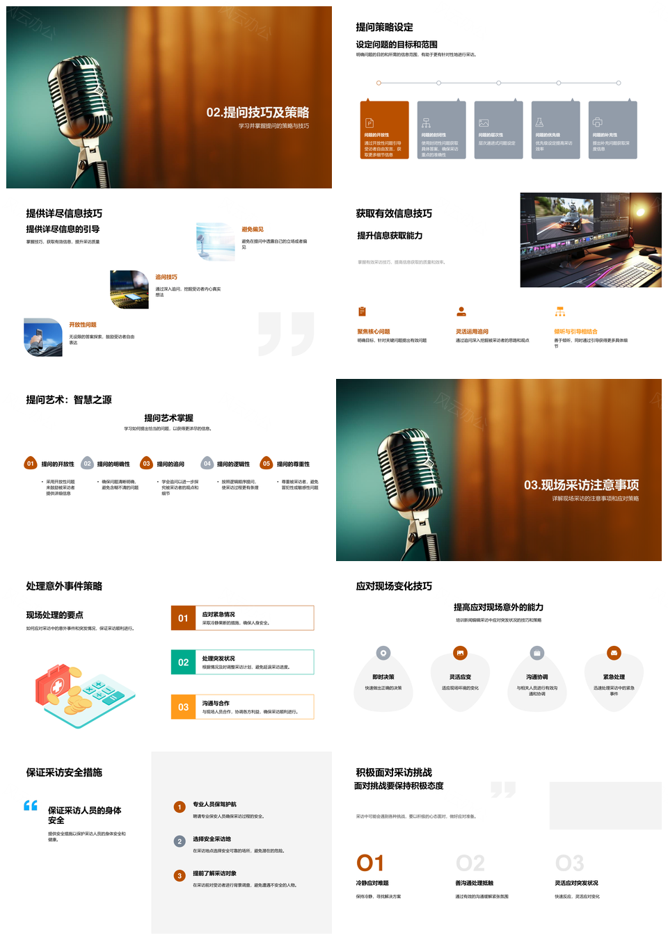 风云办公提供的专业采访提问应变技巧与媒体调研预演PPT模板,下载格式为pptx,一共28页,作品中文字及图均可以修改和编辑,图片更改请在作品中右键图片并更换,文字修改请直接点击文字进行修改。
