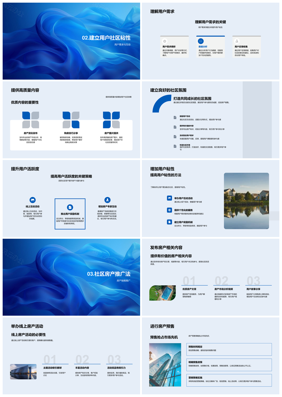 房产社区运营销售策略用户需求粘性预售推广PPT模板推荐