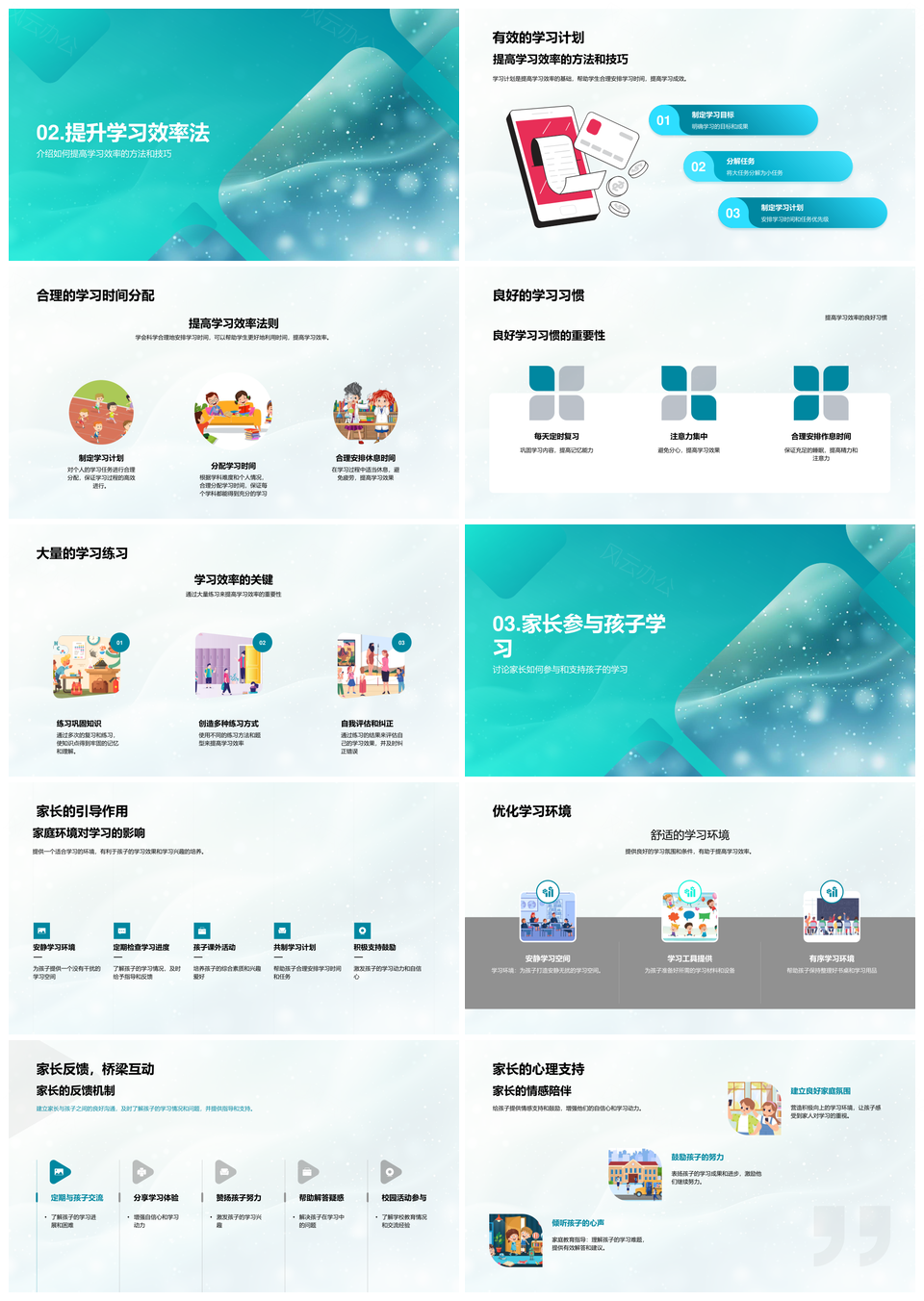 家长参与优化学习计划策略提升效率习惯成绩PPT模板推荐