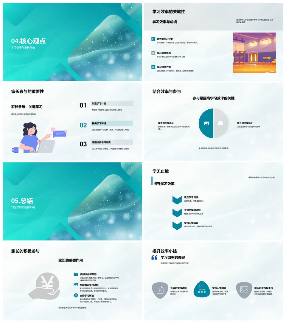 这是一张家长参与优化学习计划策略提升效率习惯成绩PPT模板,包含家长、参与、优化、学习计划、策略、提升、效率、习惯、成绩等主题内容,也可用作家长参与优化学习计划、参与优化学习计划策略、优化学习计划策略提升、学习计划策略提升效率、计划策略提升效率习惯、策略提升效率习惯成绩、提升效率习惯成绩、家长参与优化学习、参与优化学习计划策略、优化学习计划策略提升效率、学习计划策略提升效率习惯、计划策略提升效率习惯成绩、家长参与优化、参与优化学习、优化学习计划等PPT场景使用。 风云办公提供的家长参与优化学习计划策略提升效率习惯成绩PPT模板,下载格式为pptx,一共26页,作品中文字及图均可以修改和编辑,图片更改请在作品中右键图片并更换,文字修改请直接点击文字进行修改。