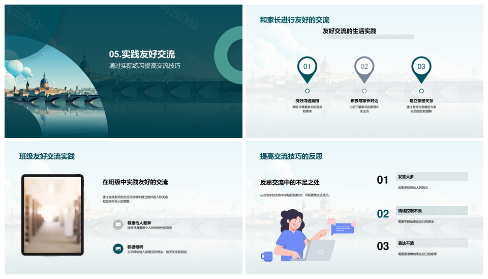 这是一张构建友谊桥梁沟通艺术化解班级矛盾PPT模板,包含友谊桥梁、沟通艺术、班级矛盾等主题内容,也可用作构建友谊桥梁沟通、友谊桥梁沟通艺术、桥梁沟通艺术化解、沟通艺术化解班级、艺术化解班级矛盾、构建友谊桥梁沟通、友谊桥梁沟通艺术、桥梁沟通艺术化解、沟通艺术化解班级、艺术化解班级矛盾、构建友谊桥梁、友谊桥梁沟通、桥梁沟通艺术、沟通艺术化解、艺术化解班级等PPT场景使用。