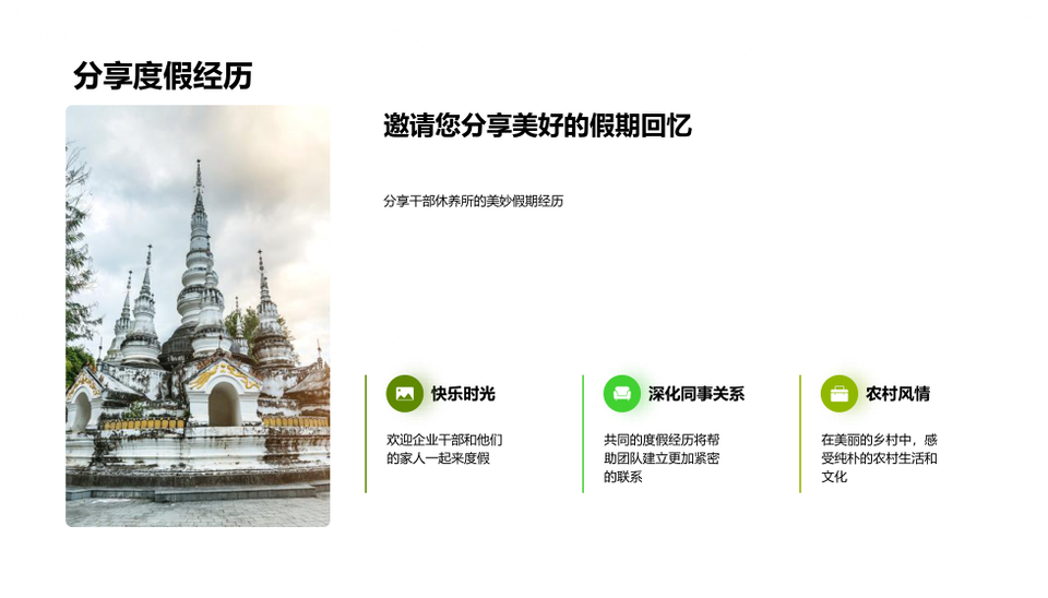 这是一张美丽乡村干部休养自然美食身心之旅PPT模板,包含美丽乡村、干部、休养、自然、美食、身心、之旅等主题内容,也可用作美丽乡村干部休养自然美食、美丽乡村干部休养、乡村干部休养自然美食、干部休养自然美食身心、休养自然美食身心之旅、美丽自然美食身心之旅、美丽乡村休养自然美食、美丽乡村干部休养自然、乡村干部自然美食身心、干部休养自然美食、自然美食身心之旅、美丽乡村干部休养、美丽乡村自然美食、干部休养自然、自然美食身心、美食身心之旅等PPT场景使用。