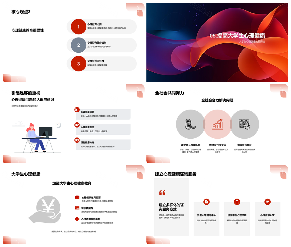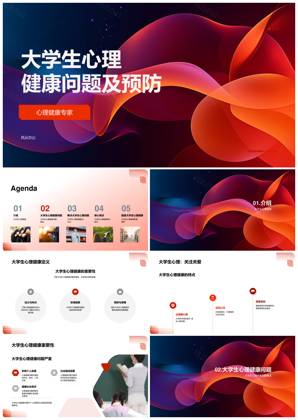 风云办公提供的2025大学生心理健康问题预防教育PPT模板,下载格式为pptx,一共24页,作品中文字及图均可以修改和编辑,图片更改请在作品中右键图片并更换,文字修改请直接点击文字进行修改。