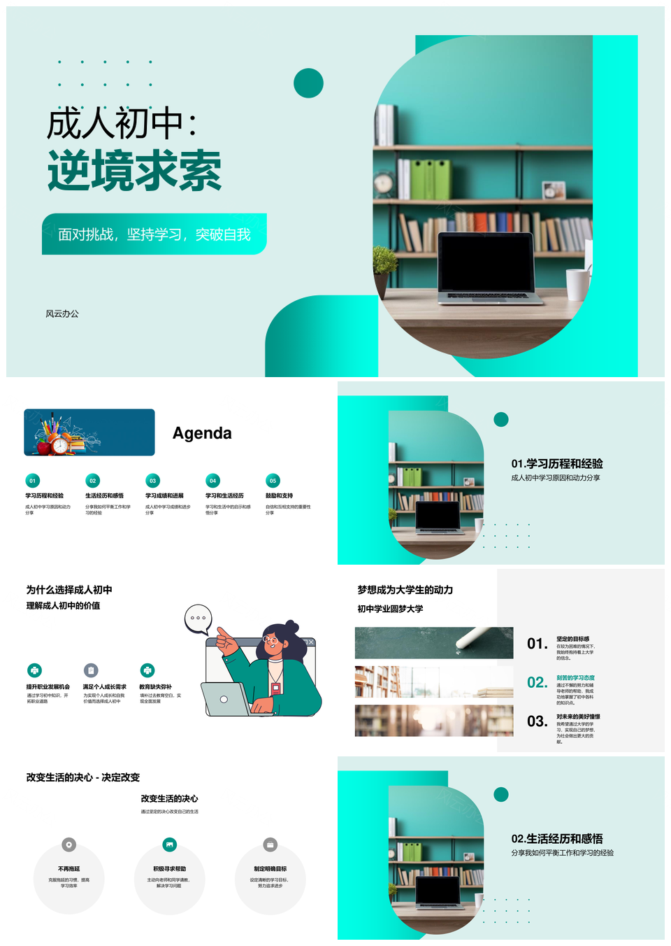 风云办公提供的成人学员六年级学习生活教育书籍汇报PPT模板,下载格式为pptx,一共23页,作品中文字及图均可以修改和编辑,图片更改请在作品中右键图片并更换,文字修改请直接点击文字进行修改。