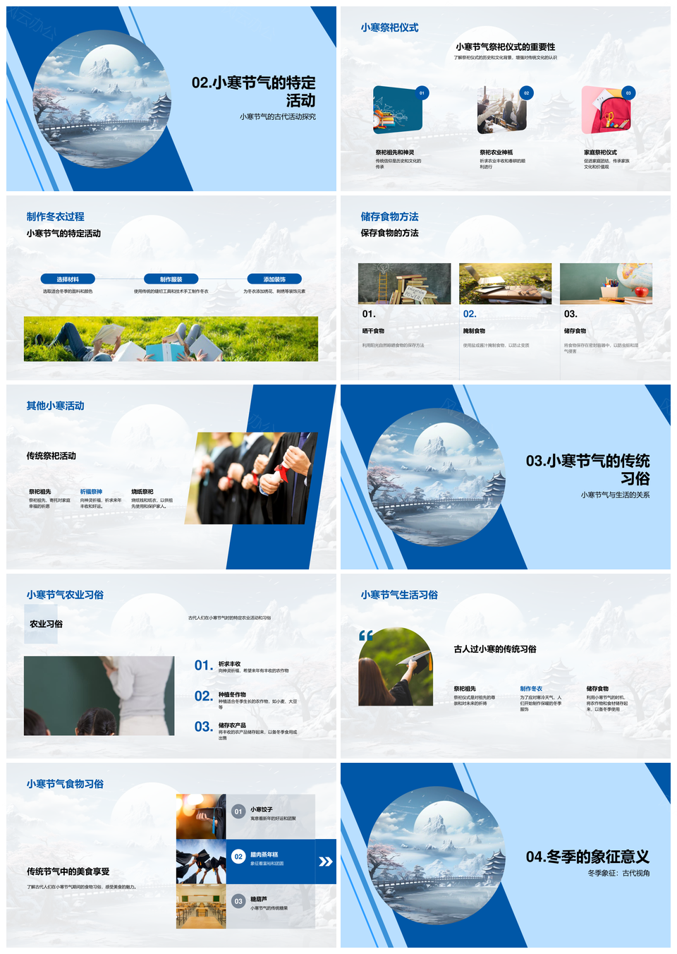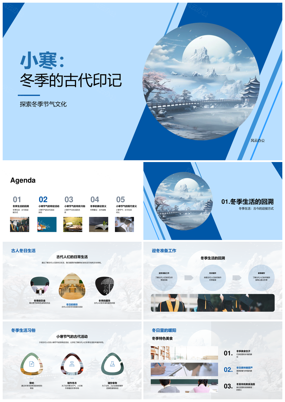 风云办公提供的小寒古代冬节气文化卷轴印记PPT模板,下载格式为pptx,一共26页,作品中文字及图均可以修改和编辑,图片更改请在作品中右键图片并更换,文字修改请直接点击文字进行修改。