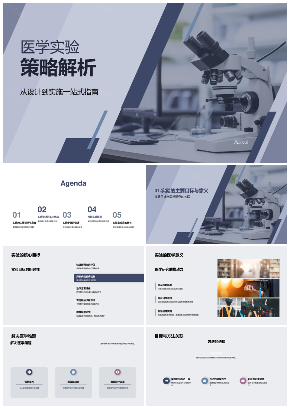 风云办公提供的医学实验设计策略步骤目标解析PPT模板,下载格式为pptx,一共33页,作品中文字及图均可以修改和编辑,图片更改请在作品中右键图片并更换,文字修改请直接点击文字进行修改。