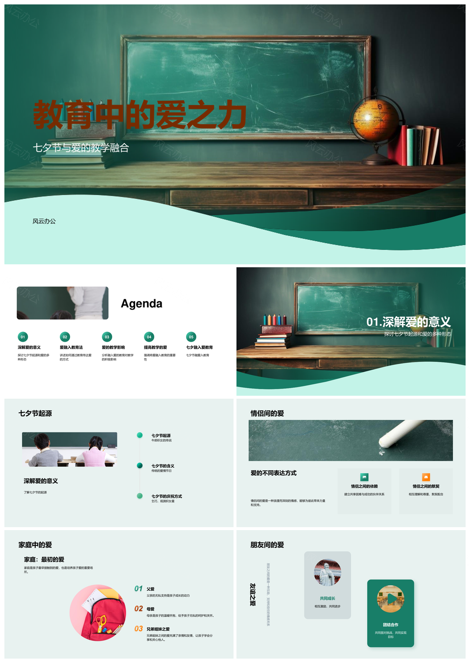 风云办公提供的七夕教育融爱力师生情谊黑板传PPT模板,下载格式为pptx,一共33页,作品中文字及图均可以修改和编辑,图片更改请在作品中右键图片并更换,文字修改请直接点击文字进行修改。