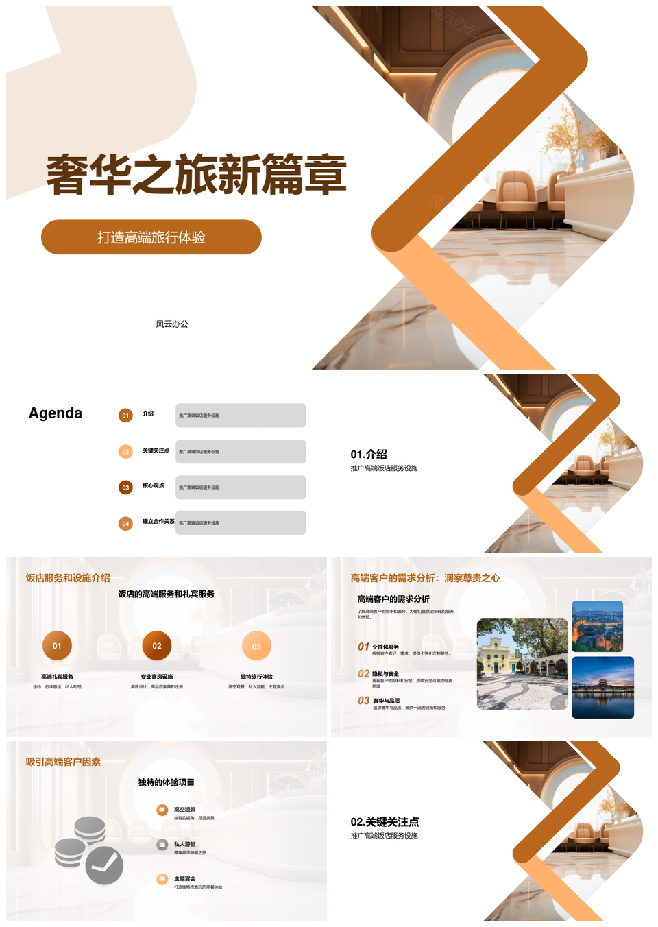 高端豪华饭店知名旅行社共推奢华服务设施PPT模板推荐