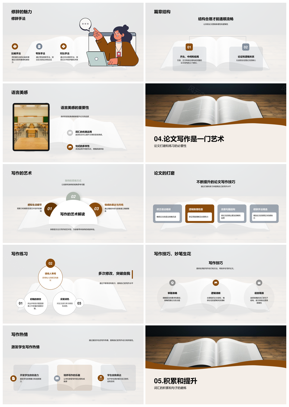 风云办公提供的论文写作全攻略主题结构技巧修辞词汇PPT模板,下载格式为pptx,一共33页,作品中文字及图均可以修改和编辑,图片更改请在作品中右键图片并更换,文字修改请直接点击文字进行修改。