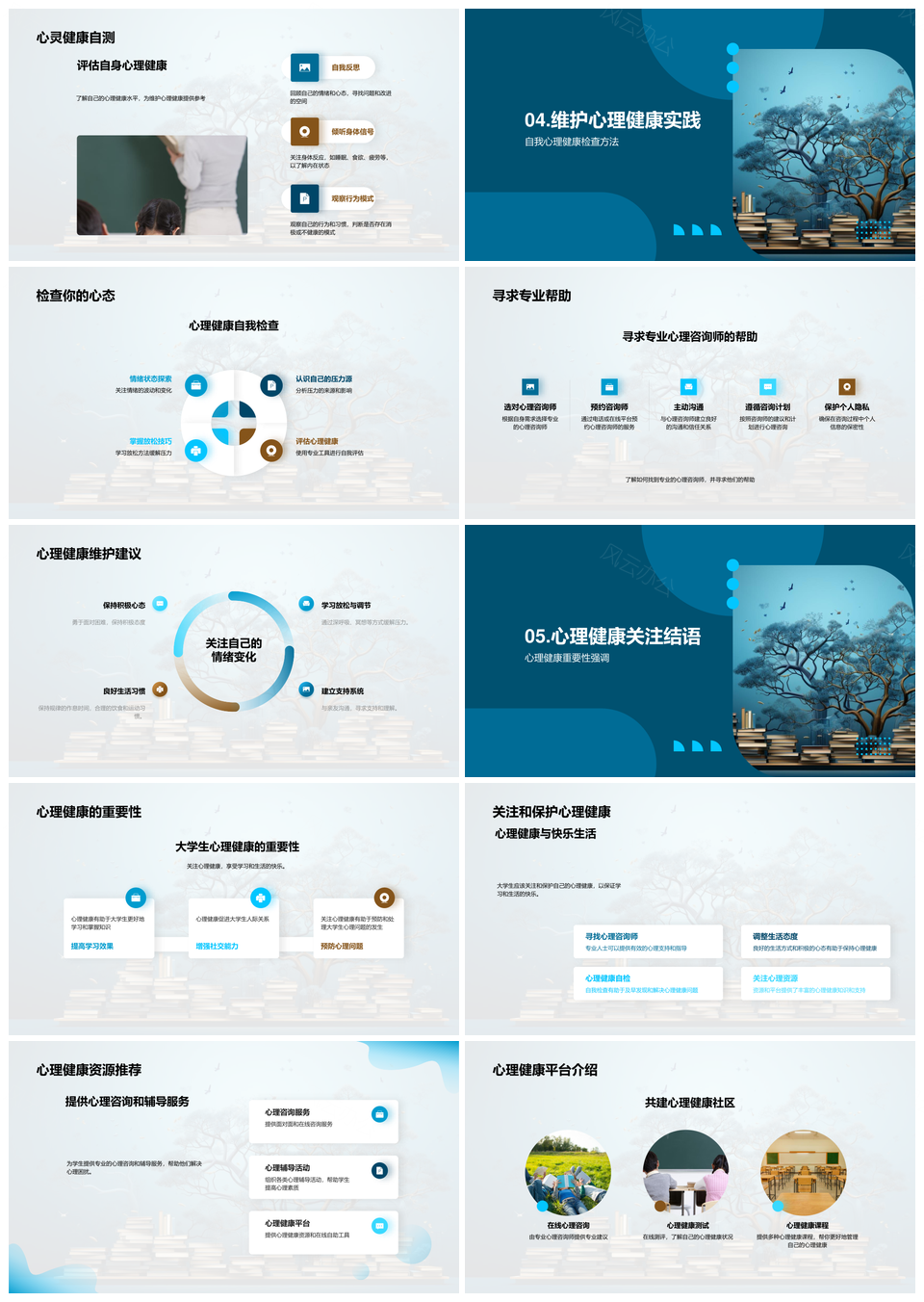 风云办公提供的大学生心理健康评估与生活优化指南PPT模板,下载格式为pptx,一共28页,作品中文字及图均可以修改和编辑,图片更改请在作品中右键图片并更换,文字修改请直接点击文字进行修改。