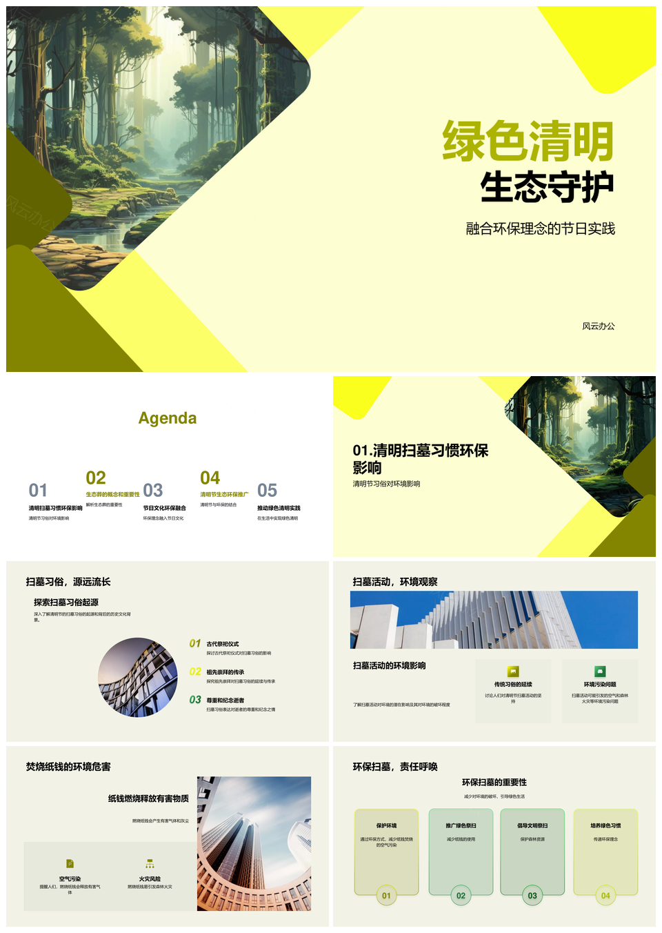风云办公提供的绿色清明环保扫墓守护生态竹林PPT模板,下载格式为pptx,一共28页,作品中文字及图均可以修改和编辑,图片更改请在作品中右键图片并更换,文字修改请直接点击文字进行修改。