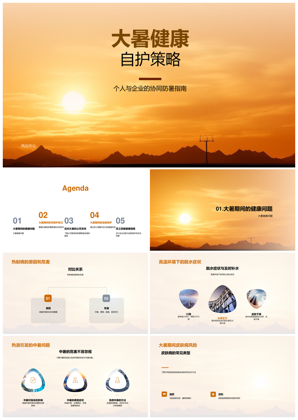风云办公提供的大暑健康自护防太阳策略PPT模板,下载格式为pptx,一共28页,作品中文字及图均可以修改和编辑,图片更改请在作品中右键图片并更换,文字修改请直接点击文字进行修改。