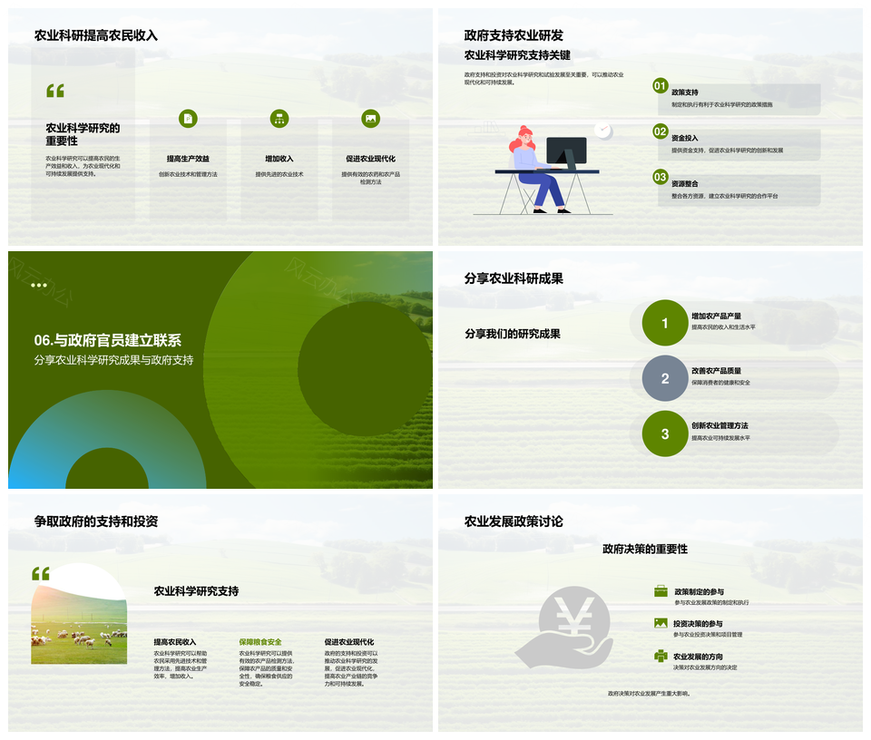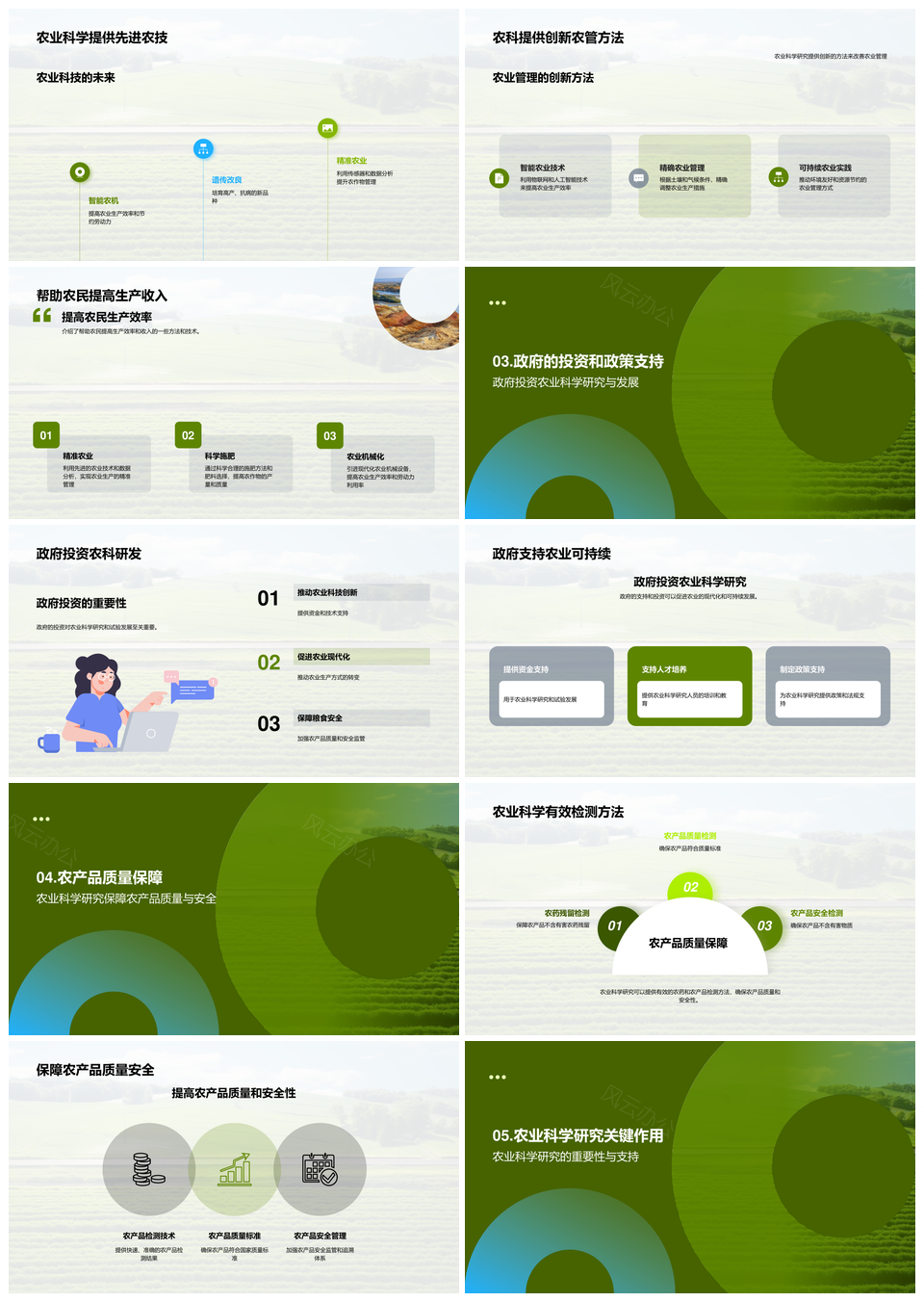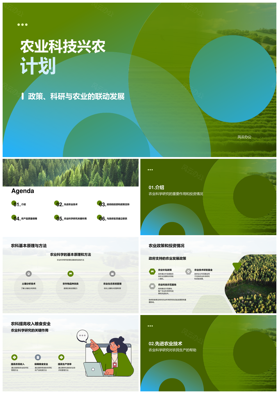 本模板专为现代农业科技主题设计,聚焦技术与生态的平衡表达。以简约商务风为基础,采用模块化布局,便于呈现数据分析、技术原理等专业内容。主视觉融合抽象化农业形态与科技元素,运用波粒动态图形隐喻技术驱动的精准性与自然规律的双重属性,激光光束线条强化方案的前沿感。内页包含9类可编辑图表,支持农业物联网架构、绿色能源应用等复杂流程的可视化呈现。配色选用墨绿与浅灰渐变,既传递生态属性,又符合办公场景的专业调性。适用于智慧农业方案汇报、科研技术发布会、可持续农业发展研讨等场景,帮助用户高效完成逻辑严谨、视觉直观的学术型演示。