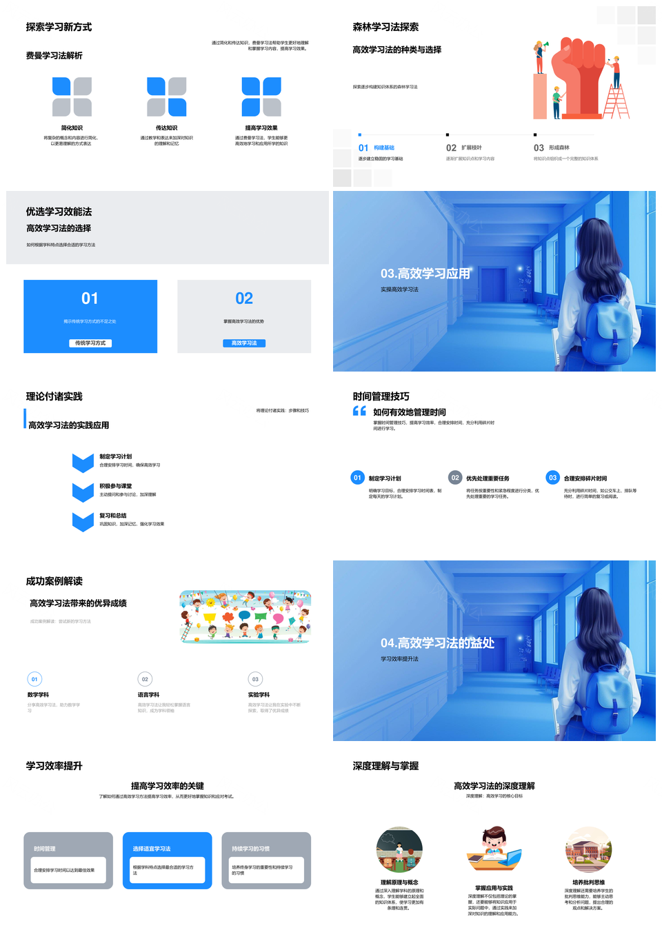 本科新生高效学习法策略费曼森林时间管理PPT模板推荐