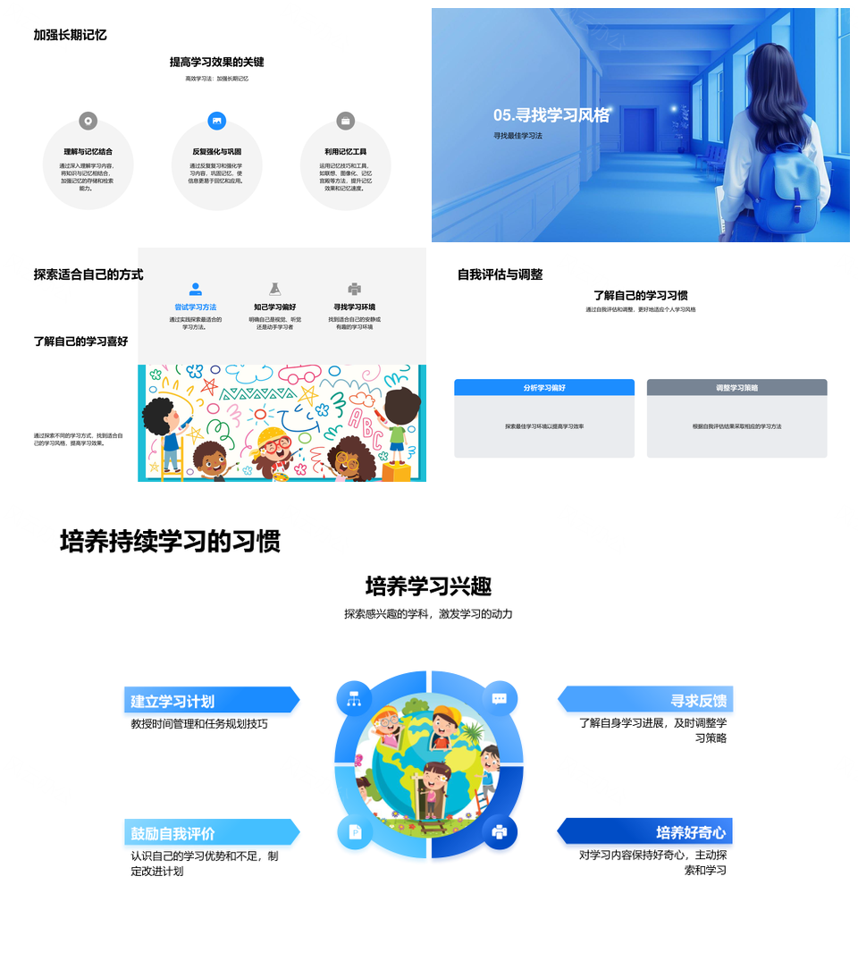 这是一张本科新生高效学习法策略费曼森林时间管理PPT模板,包含本科新生、高效学习法、策略、费曼、森林、时间管理等主题内容,也可用作本科新生高效学习法、本科新生高效策略、新生高效学习法策略、高效学习法策略费曼、本科学习法策略费曼、新生学习法策略费曼、学习法策略费曼森林、策略费曼森林时间管理、本科新生时间管理、高效学习法时间管理、费曼森林时间管理、本科高效时间管理、新生学习法策略、高效策略费曼森林、学习法森林时间管理等PPT场景使用。 风云办公提供的本科新生高效学习法策略费曼森林时间管理PPT模板,下载格式为pptx,一共23页,作品中文字及图均可以修改和编辑,图片更改请在作品中右键图片并更换,文字修改请直接点击文字进行修改。