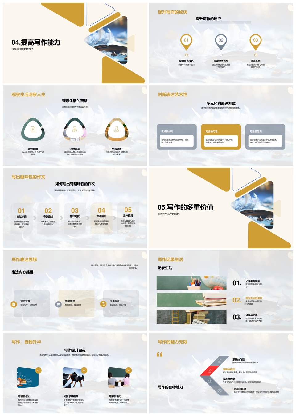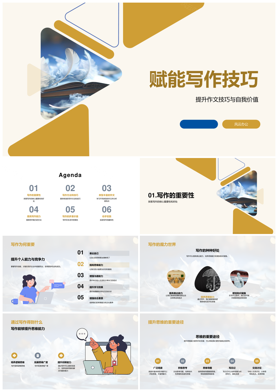 风云办公提供的写作技巧赋能自我多元价值提升PPT模板,下载格式为pptx,一共32页,作品中文字及图均可以修改和编辑,图片更改请在作品中右键图片并更换,文字修改请直接点击文字进行修改。