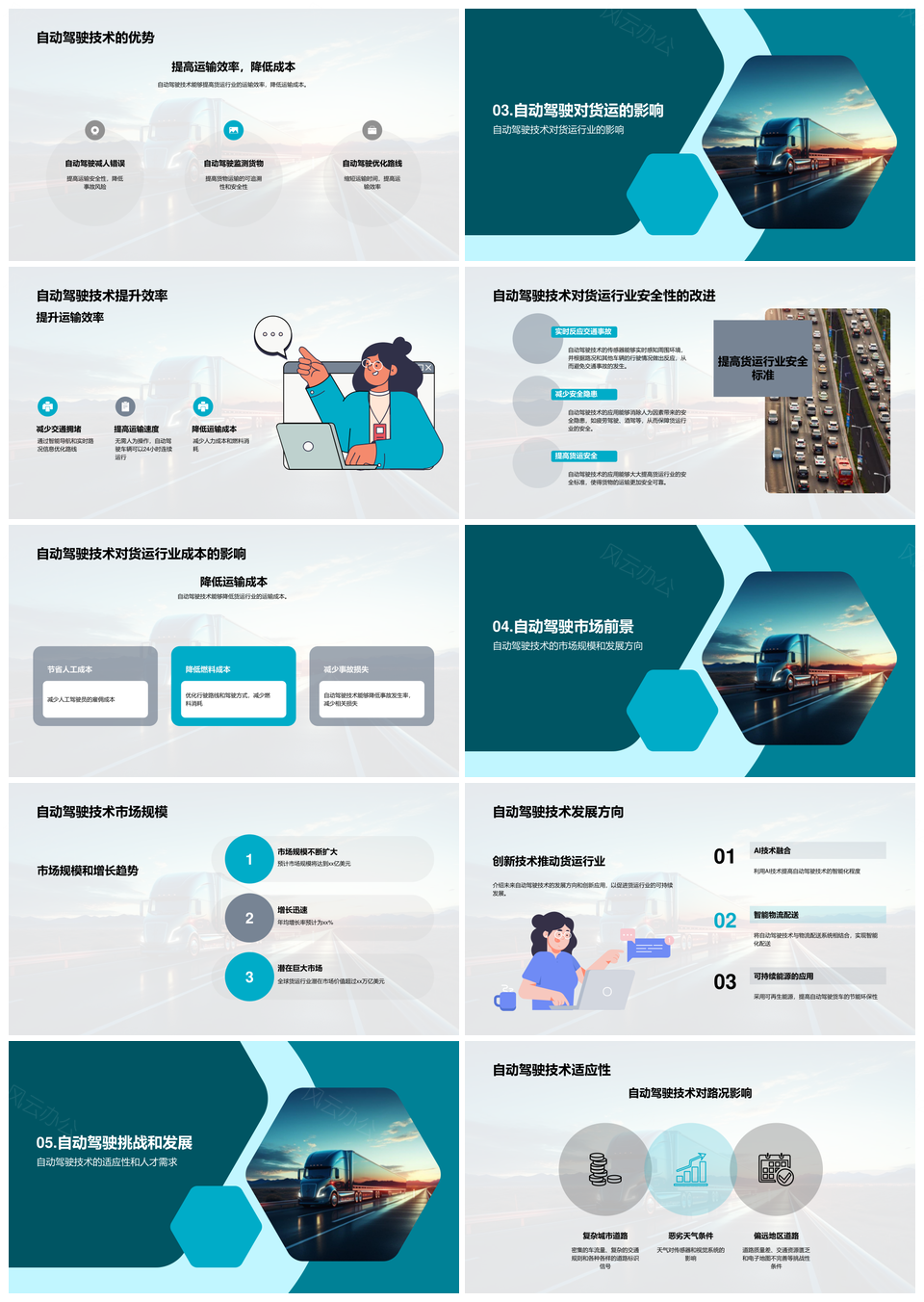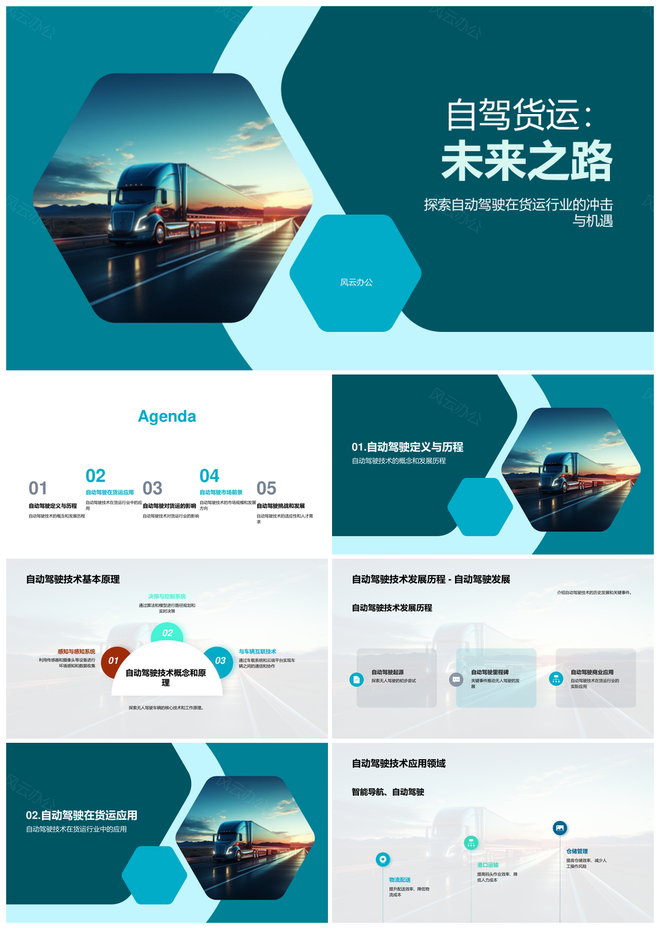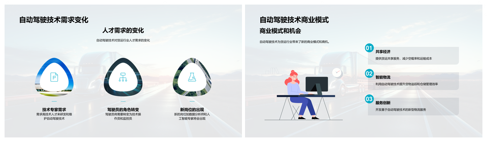 自动驾驶卡车货运发展历程应用挑战PPT模板推荐