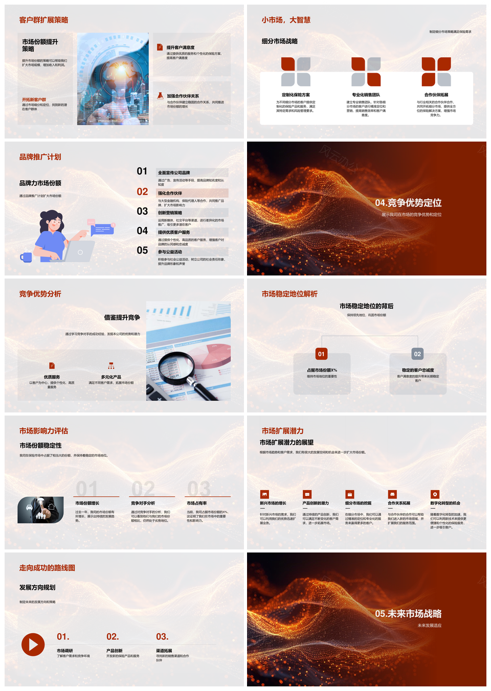 这是一张保险业务竞聘市场策略产品服务技术创新优化PPT模板,包含保险业务、竞聘、市场策略、产品服务、技术创新、优化等主题内容,也可用作保险业务竞聘市场策略产品服务、保险业务市场策略产品服务技术创新、竞聘市场策略产品服务技术创新、市场策略产品服务技术创新优化、保险业务竞聘市场策略产品服务、保险业务市场策略技术创新优化、竞聘市场策略技术创新优化、保险业务竞聘市场策略、市场策略产品服务技术创新、保险业务产品服务技术创新、竞聘产品服务技术创新优化、保险业务技术创新优化、市场策略技术创新优化、产品服务技术创新优化、竞聘市场策略产品服务等PPT场景使用。 风云办公提供的保险业务竞聘市场策略产品服务技术创新优化PPT模板,下载格式为pptx,一共33页,作品中文字及图均可以修改和编辑,图片更改请在作品中右键图片并更换,文字修改请直接点击文字进行修改。