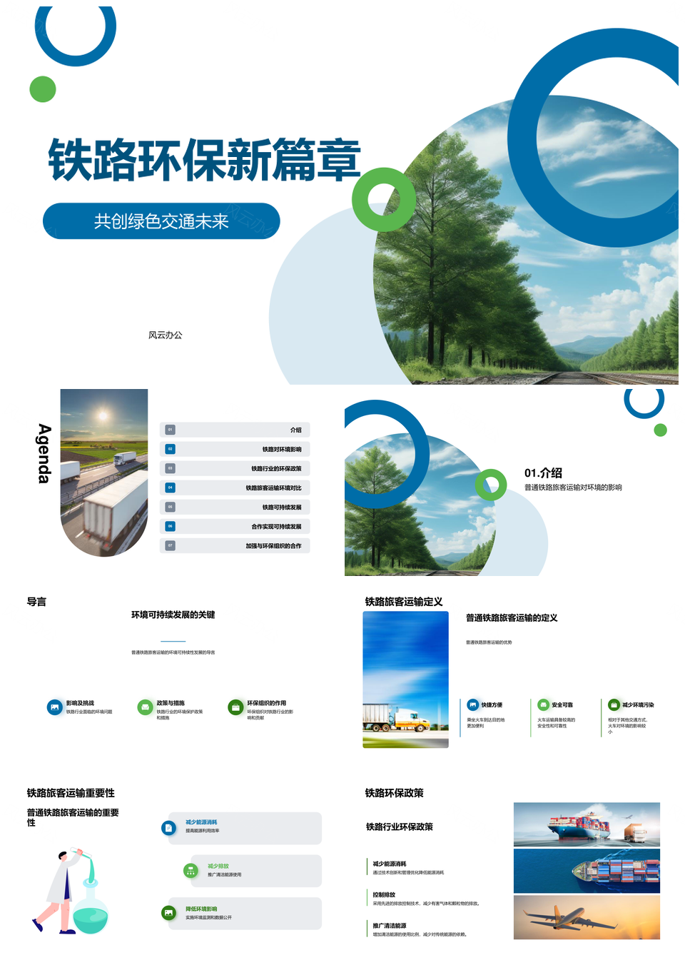 风云办公提供的铁路环保客运可持续发展政策PPT模板,下载格式为pptx,一共36页,作品中文字及图均可以修改和编辑,图片更改请在作品中右键图片并更换,文字修改请直接点击文字进行修改。