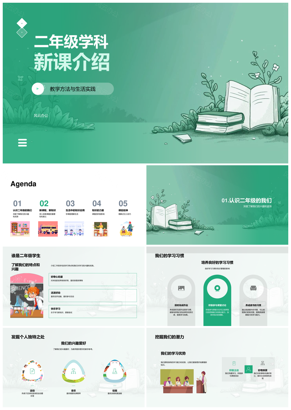 风云办公提供的二年级学科新课教学生活实践兴趣学法PPT模板,下载格式为pptx,一共33页,作品中文字及图均可以修改和编辑,图片更改请在作品中右键图片并更换,文字修改请直接点击文字进行修改。