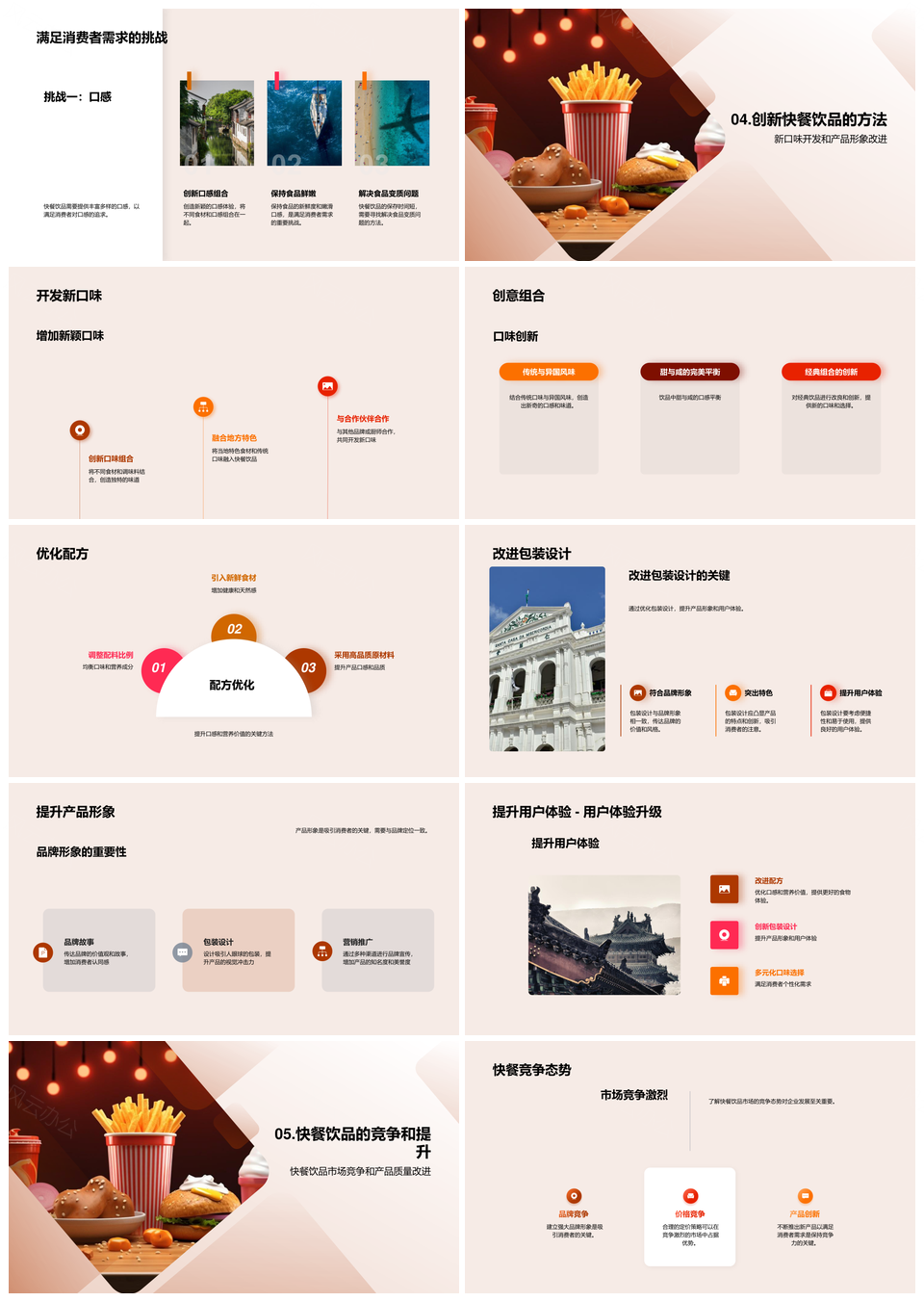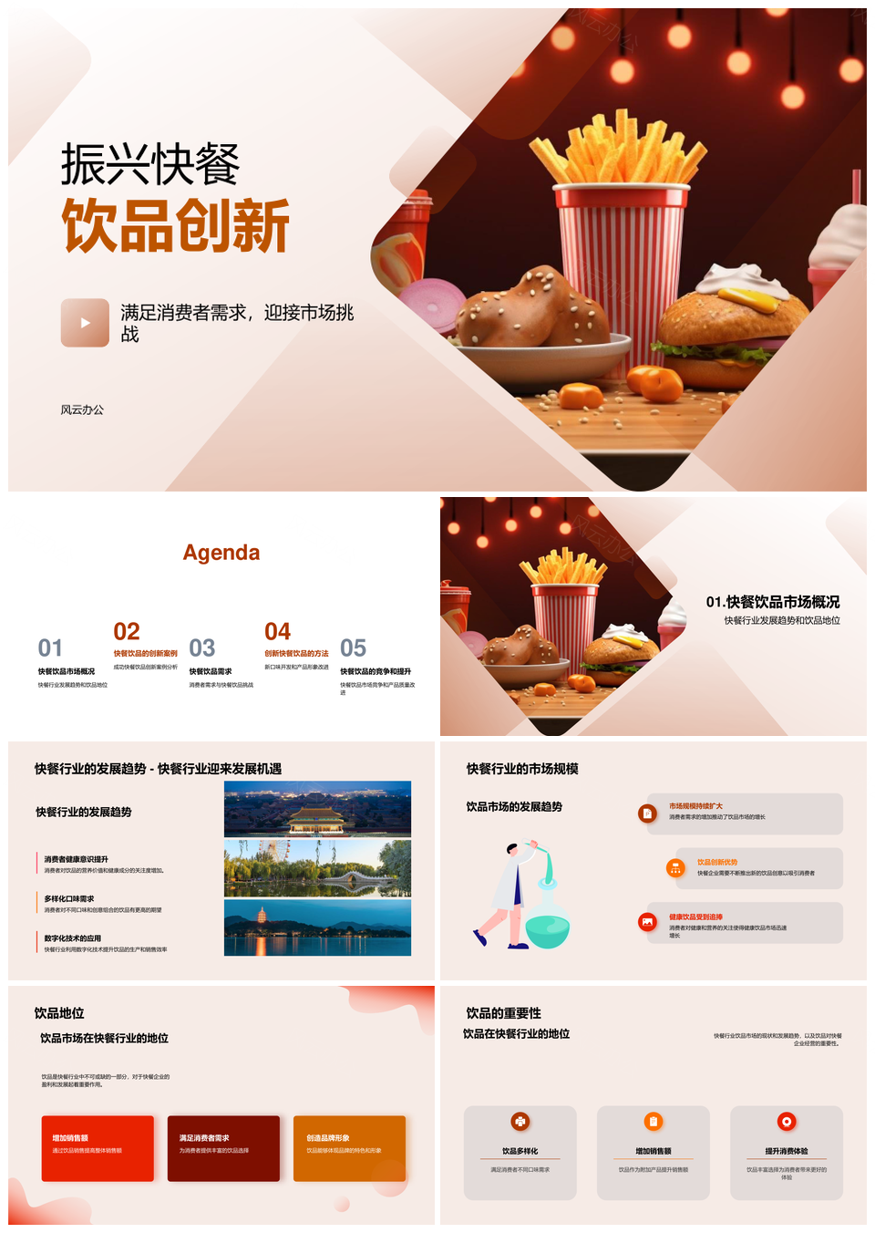 风云办公提供的快餐饮品创新开发驱动市场规模增长PPT模板,下载格式为pptx,一共33页,作品中文字及图均可以修改和编辑,图片更改请在作品中右键图片并更换,文字修改请直接点击文字进行修改。