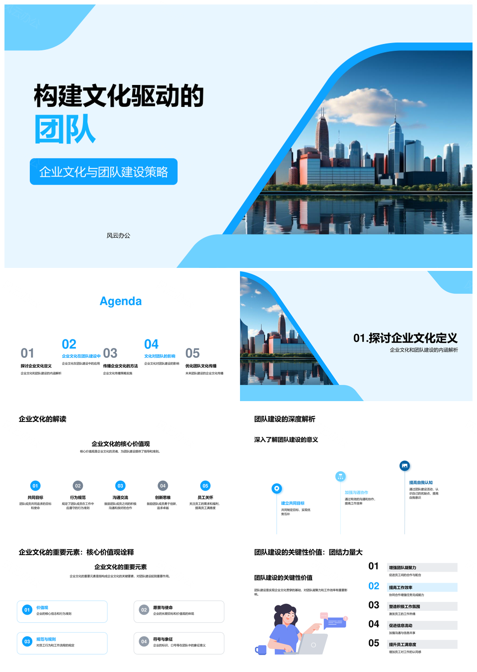 这是一张构建文化驱动团队核心价值观凝聚力建设PPT模板,包含构建、文化、驱动、团队、核心、价值观、凝聚力、建设等主题内容,也可用作构建文化驱动团队核心价值观、文化驱动团队核心价值观凝聚力、团队核心价值观凝聚力建设、构建文化驱动团队、文化驱动团队核心价值观、团队核心价值观凝聚力、核心价值观凝聚力建设、构建文化驱动、文化驱动团队、团队核心价值观、核心价值观凝聚力、凝聚力建设、构建团队、构建核心价值观、团队建设等PPT场景使用。 风云办公提供的构建文化驱动团队核心价值观凝聚力建设PPT模板,下载格式为pptx,一共33页,作品中文字及图均可以修改和编辑,图片更改请在作品中右键图片并更换,文字修改请直接点击文字进行修改。