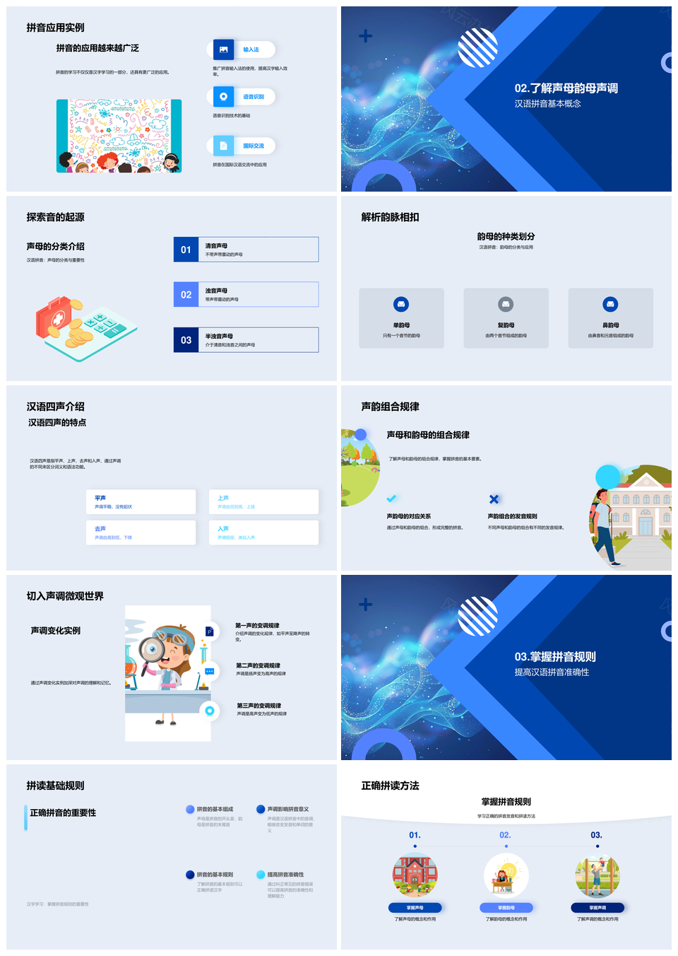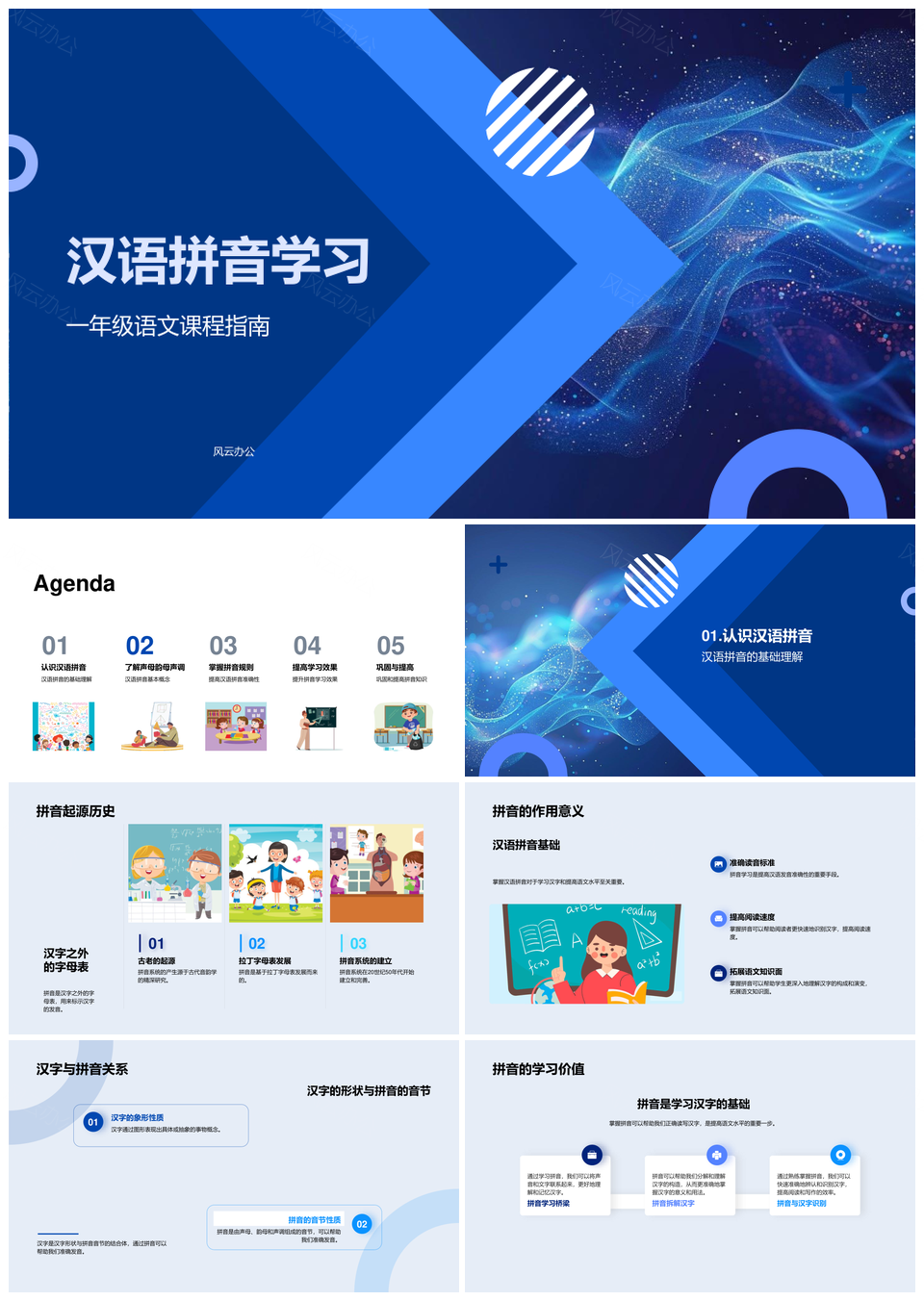 风云办公提供的一年级语文拼音声母韵母拼读教学PPT模板,下载格式为pptx,一共33页,作品中文字及图均可以修改和编辑,图片更改请在作品中右键图片并更换,文字修改请直接点击文字进行修改。
