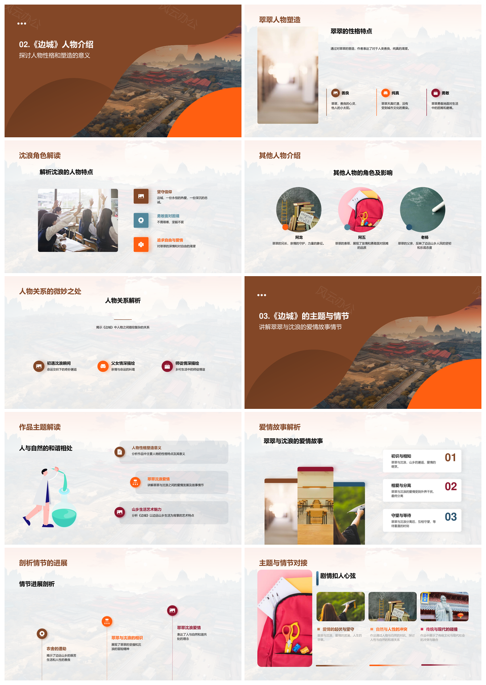 边城人文魅力与翠翠沈浪性格及古村创作剖析PPT模板推荐