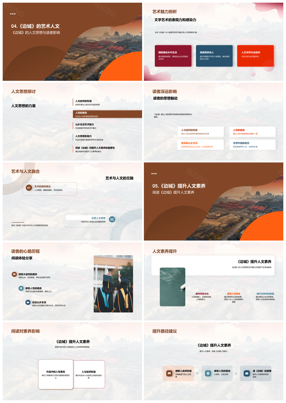这是一张边城人文魅力与翠翠沈浪性格及古村创作剖析PPT模板,包含边城、人文魅力、翠翠、沈浪、性格、古村、创作剖析等主题内容,也可用作边城人文魅力古村、边城人文魅力创作、边城人文创作剖析、边城魅力翠翠沈浪、人文魅力翠翠沈浪、翠翠沈浪性格剖析、古村创作剖析边城、沈浪性格古村创作、人文魅力古村创作、边城古村创作剖析、翠翠沈浪古村创作、人文沈浪性格剖析、边城人文性格古村、魅力古村创作剖析、翠翠性格古村创作等PPT场景使用。 风云办公提供的边城人文魅力与翠翠沈浪性格及古村创作剖析PPT模板,下载格式为pptx,一共28页,作品中文字及图均可以修改和编辑,图片更改请在作品中右键图片并更换,文字修改请直接点击文字进行修改。