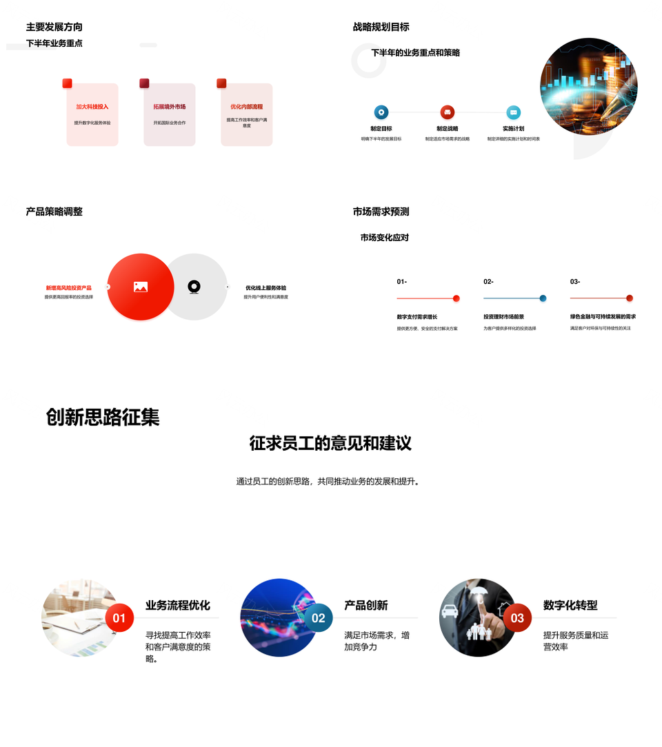 风云办公提供的银行业务半年业绩增长与策略展望PPT模板,下载格式为pptx,一共33页,作品中文字及图均可以修改和编辑,图片更改请在作品中右键图片并更换,文字修改请直接点击文字进行修改。