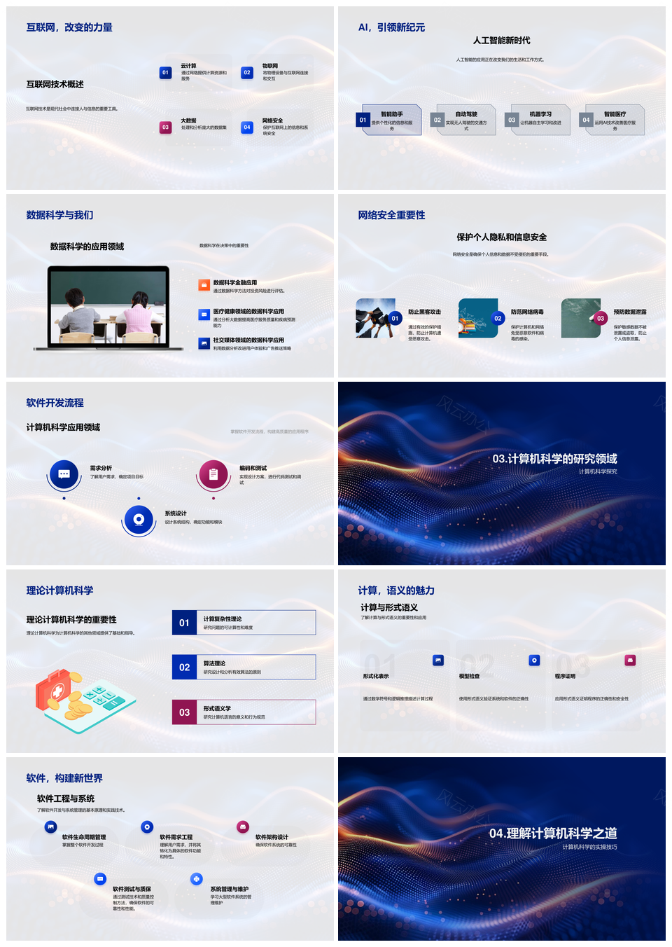 计算机科学编程算法人工智能数据安全互联PPT模板推荐