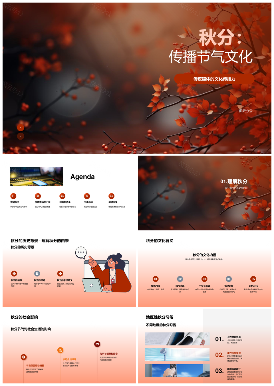 秋分文化媒体传播传统与技术创新策略PPT模板
