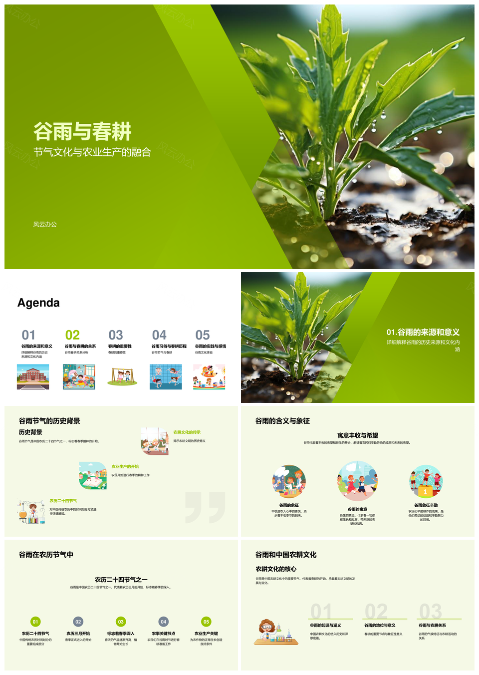 风云办公提供的谷雨春耕节气农事雨滴文化PPT模板,下载格式为pptx,一共28页,作品中文字及图均可以修改和编辑,图片更改请在作品中右键图片并更换,文字修改请直接点击文字进行修改。