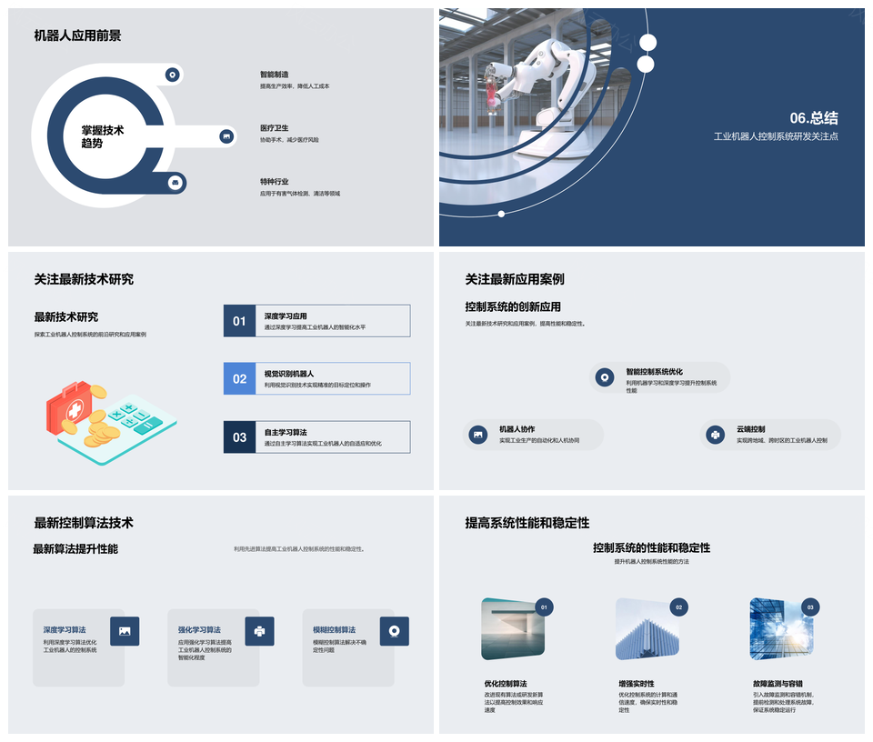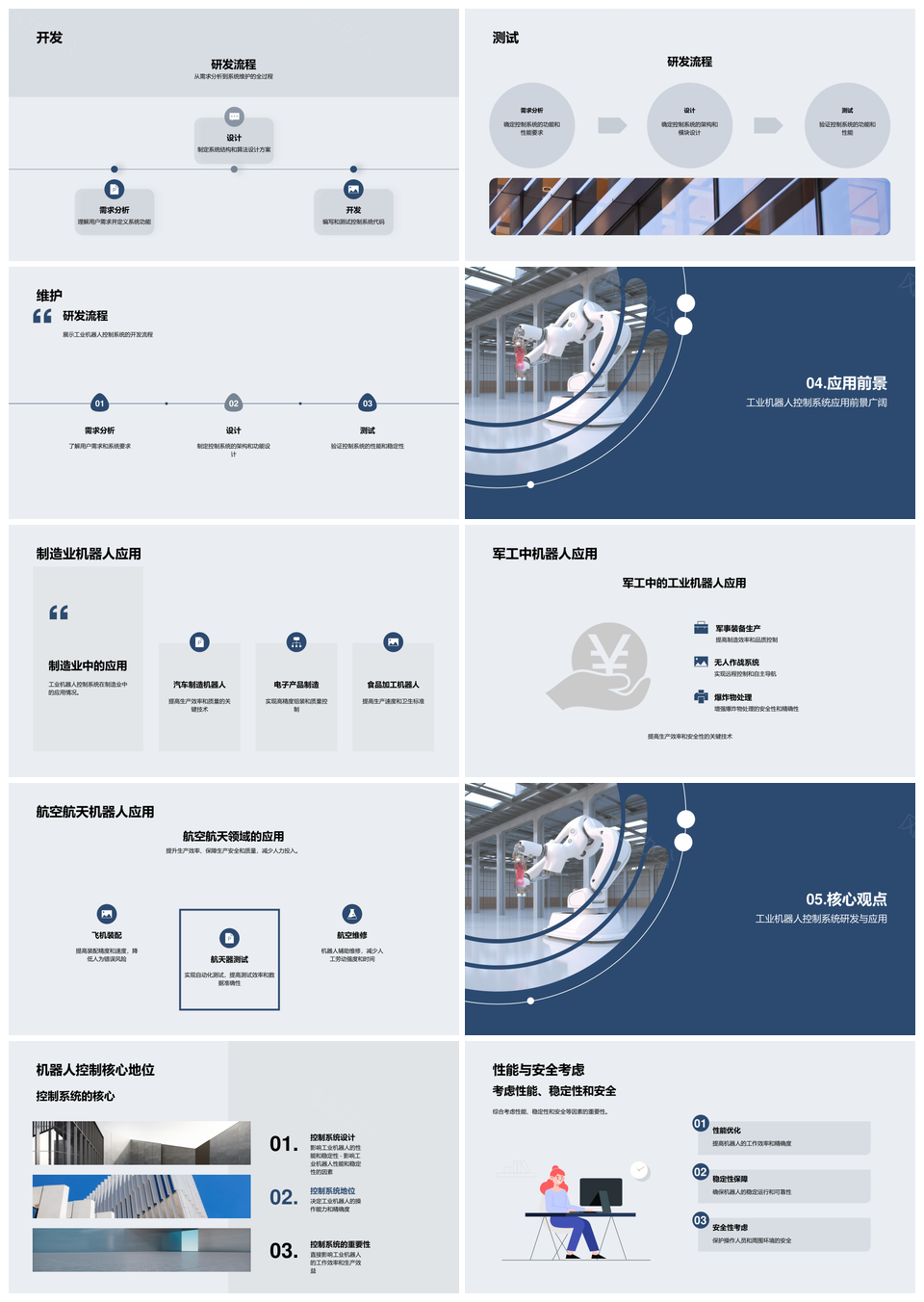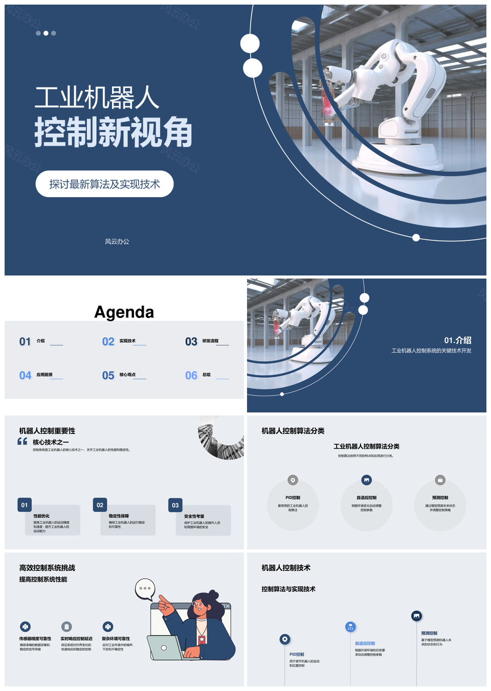 风云办公提供的工业机器人控制系统核心算法研发PPT模板,下载格式为pptx,一共34页,作品中文字及图均可以修改和编辑,图片更改请在作品中右键图片并更换,文字修改请直接点击文字进行修改。
