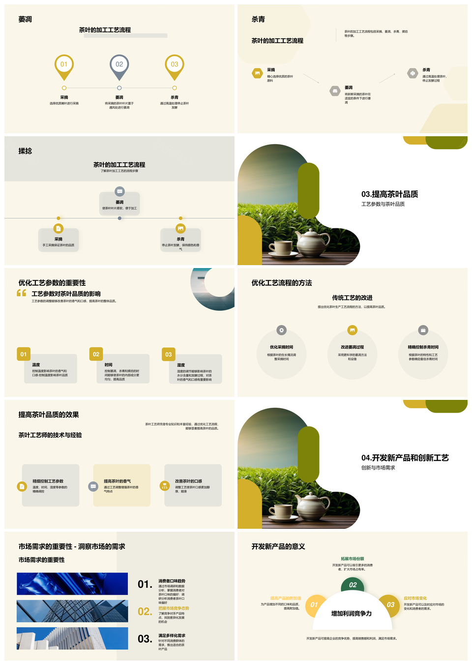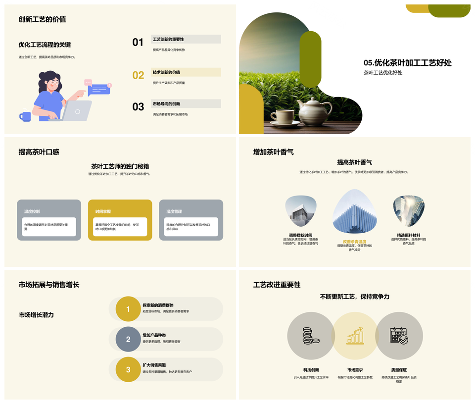 风云办公提供的茶叶工艺优化提升品质满足市场需求PPT模板,下载格式为pptx,一共24页,作品中文字及图均可以修改和编辑,图片更改请在作品中右键图片并更换,文字修改请直接点击文字进行修改。