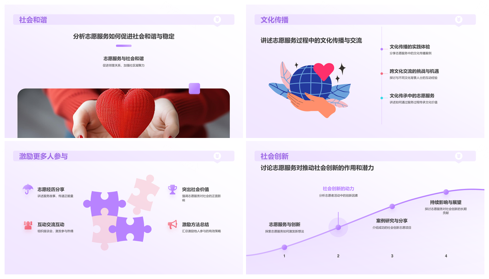 这是一张紫绘志愿同行慈善平等健康多样爱相伴PPT模板,包含紫绘、志愿、同行、慈善、平等、健康、多样、爱相伴等主题内容,也可用作紫绘志愿同行慈善、志愿同行慈善平等、慈善平等健康多样、平等健康多样爱相伴、健康多样爱相伴同行、紫绘志愿同行、志愿同行慈善、慈善平等健康、平等健康多样、健康多样爱相伴、紫绘志愿、志愿同行、慈善平等、平等健康、健康多样等PPT场景使用。