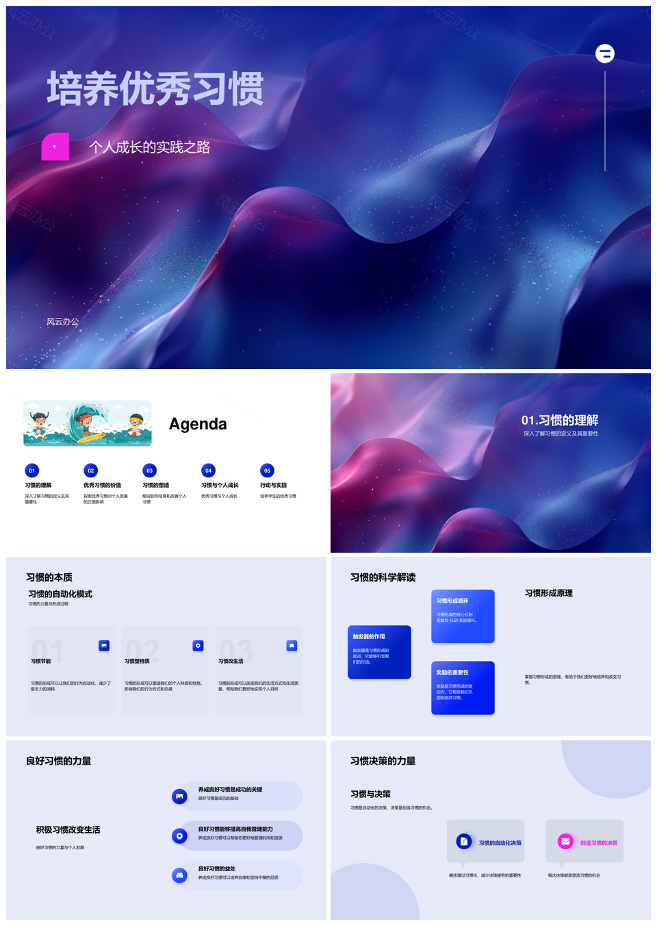 风云办公提供的优秀习惯助力个人成长提升PPT模板,下载格式为pptx,一共33页,作品中文字及图均可以修改和编辑,图片更改请在作品中右键图片并更换,文字修改请直接点击文字进行修改。
