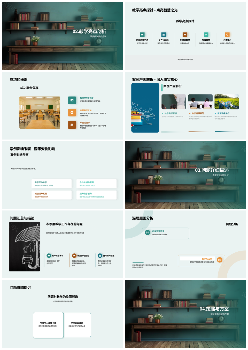 教学之路季度总结计划实施反馈亮点案例问题PPT模板推荐