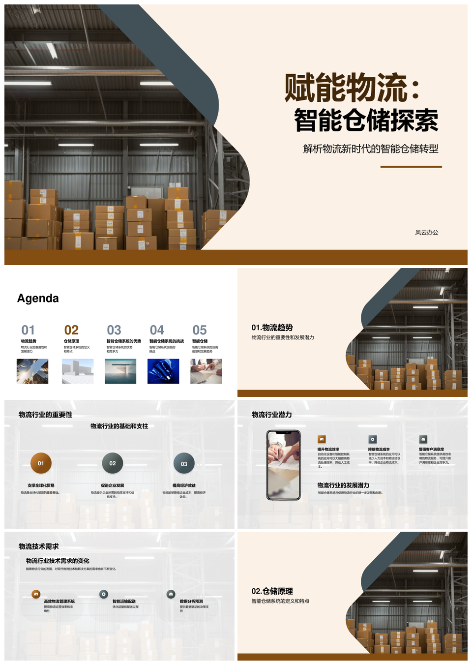 风云办公提供的智能仓储系统赋能物流行业发展潜力PPT模板,下载格式为pptx,一共23页,作品中文字及图均可以修改和编辑,图片更改请在作品中右键图片并更换,文字修改请直接点击文字进行修改。