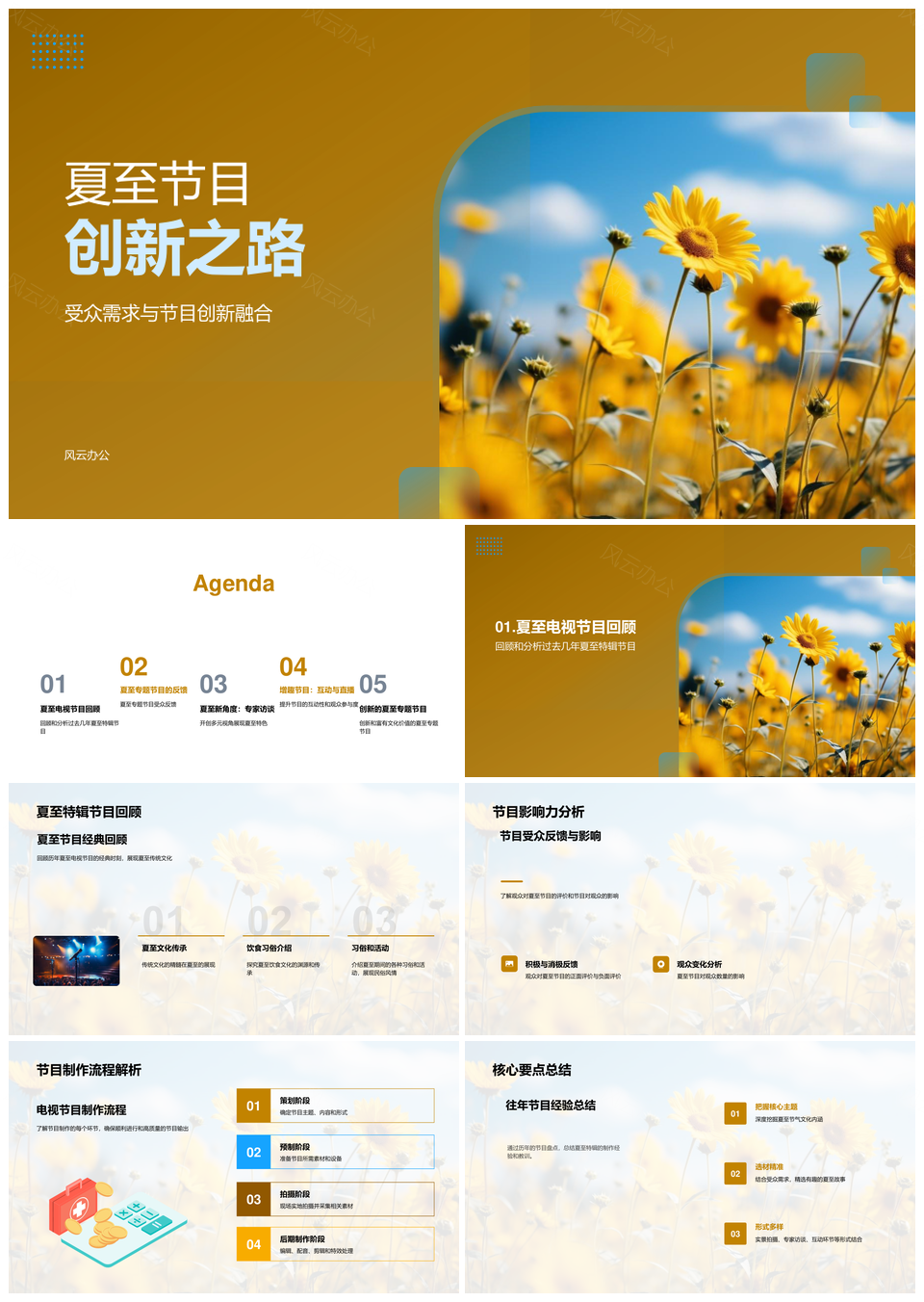 风云办公提供的夏至电视节目创新互动直播专家访谈PPT模板,下载格式为pptx,一共28页,作品中文字及图均可以修改和编辑,图片更改请在作品中右键图片并更换,文字修改请直接点击文字进行修改。