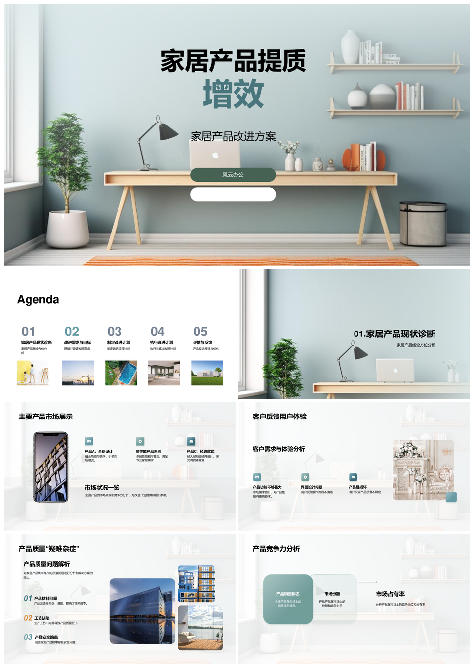 风云办公提供的家居产品提质增效改进方案竞争力分析PPT模板,下载格式为pptx,一共24页,作品中文字及图均可以修改和编辑,图片更改请在作品中右键图片并更换,文字修改请直接点击文字进行修改。