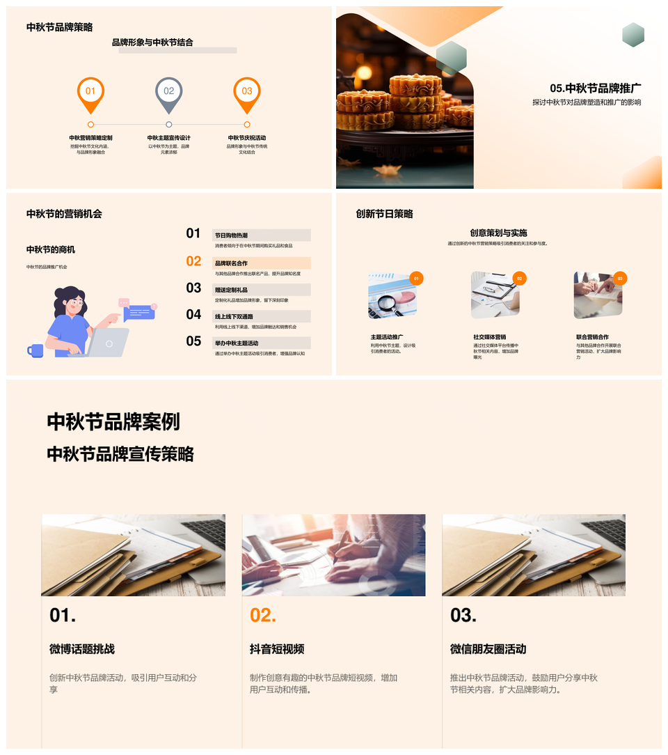 风云办公提供的中秋品牌策略营销与节日文化月饼推广PPT模板,下载格式为pptx,一共23页,作品中文字及图均可以修改和编辑,图片更改请在作品中右键图片并更换,文字修改请直接点击文字进行修改。
