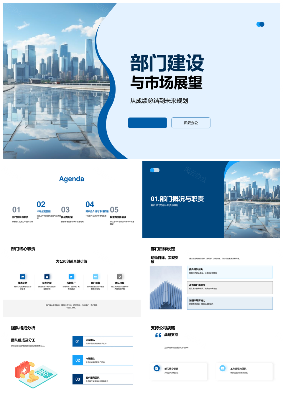 风云办公提供的部门建设团队架构与市场战略展望PPT模板,下载格式为pptx,一共28页,作品中文字及图均可以修改和编辑,图片更改请在作品中右键图片并更换,文字修改请直接点击文字进行修改。